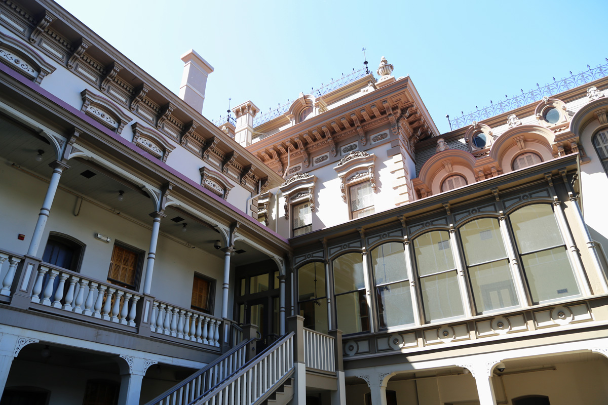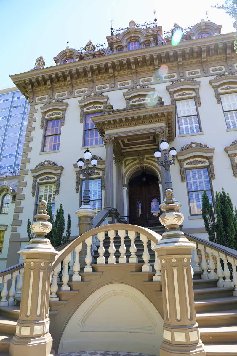 이 건물은 원래 2층으로 1856년에 지어졌는데, 새크라멘토 강(Sacramento River)이 범람해서 잘 꾸며진 1층에 물이 들어오는 문제로, 1872년에 2층 건물을 통째로 들어올린 후에 지금의 1층을 새로 만들어서 끼워넣고 또 위쪽으로도 한 층을 더 올려서 4층 건물이 되었다고 한다.