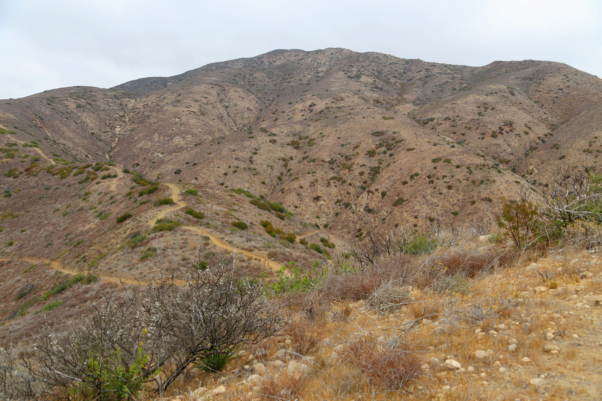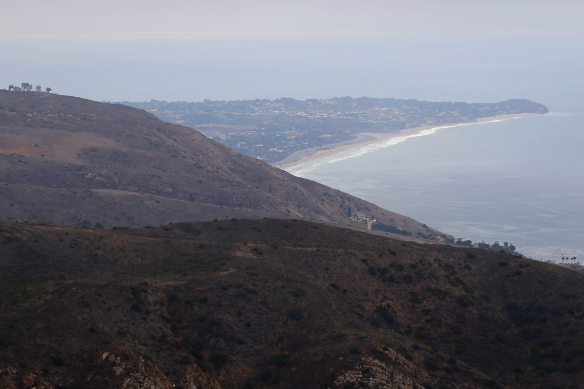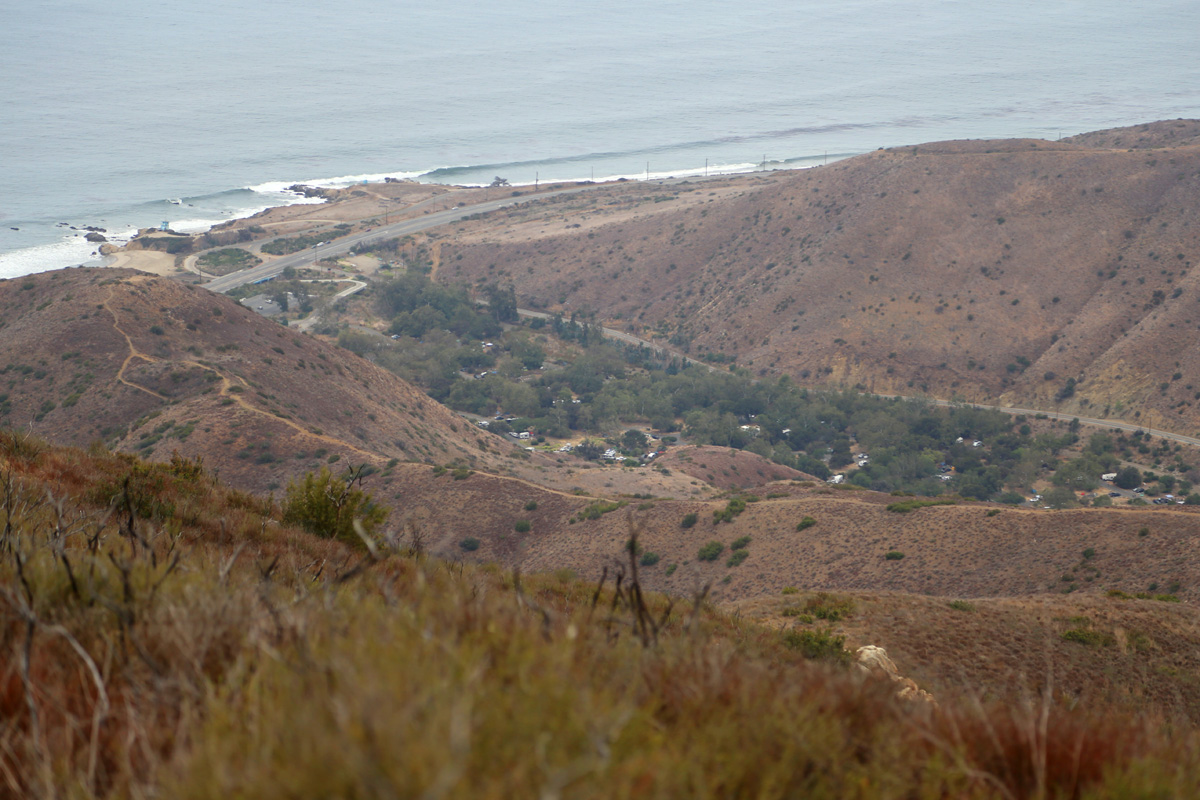서쪽 바로 아래로는 이 날 하이킹의 최종 목적지인 레오까리요 주립공원(Leo Carrillo State Park)의 바닷가 및 계곡을 따라 만들어진 캠핑장이 보인다. 레오까리요 캠핑장은 약 140개의 사이트가 있는 LA 지역에서 가장 규모가 크고 인기있는 곳이란다. 문제는 볼거 다 봤는데 굳이 저 아래 왼편에 보이는 언덕까지 내려갈 필요가 있냐는 것인데...