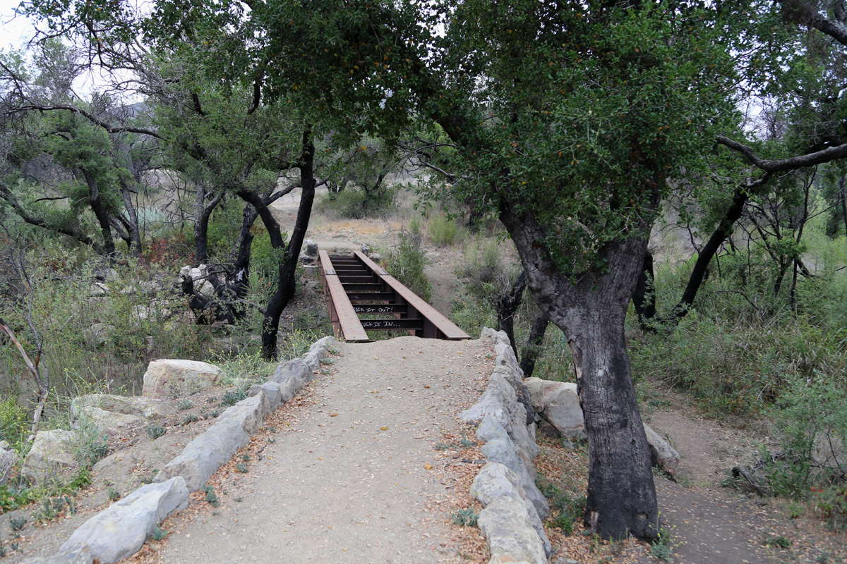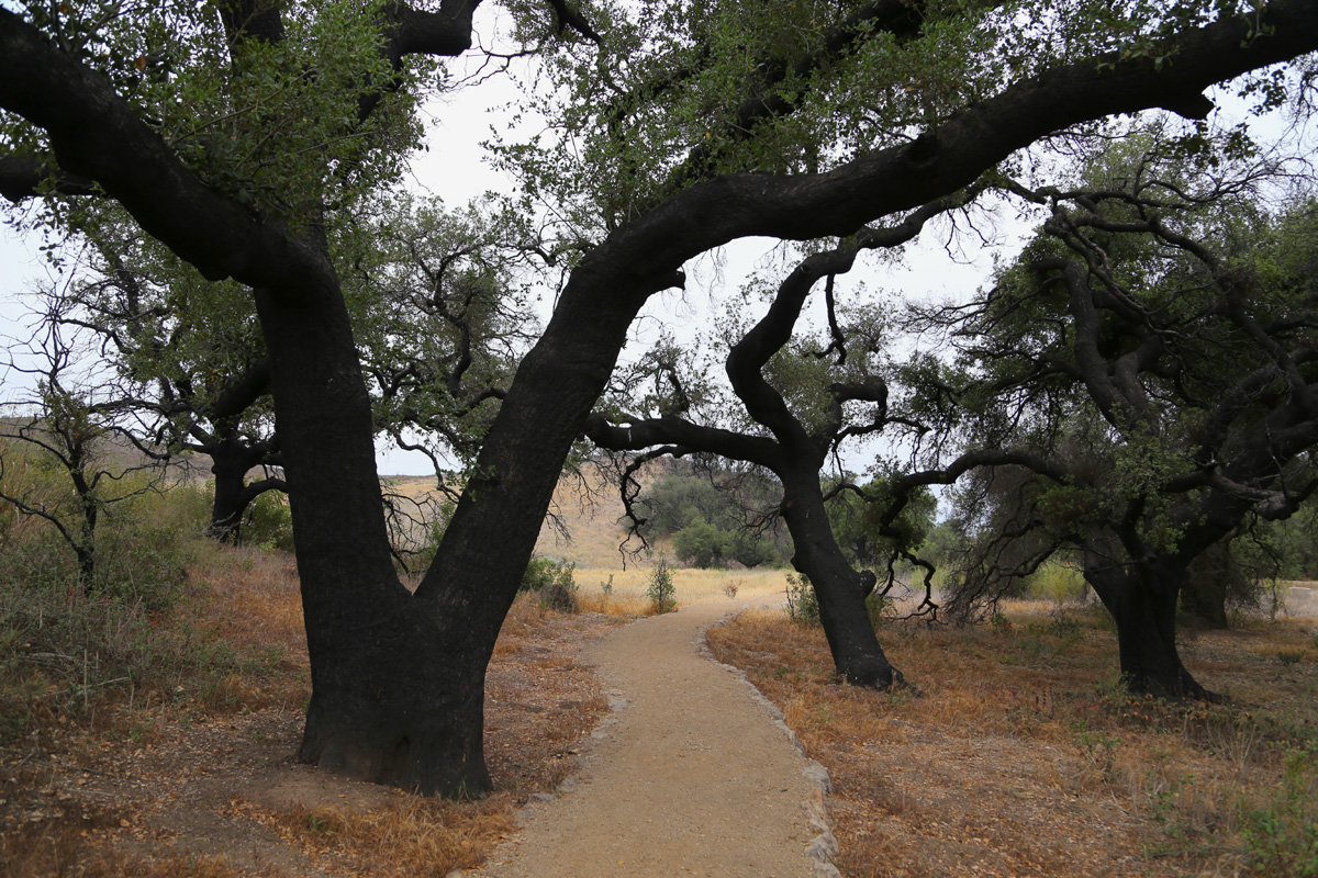 안내판이 사라진 이유와 트레일 좌우의 큰 나무들이 모두 새까만 이유는 바로, 2018년 11월에 발생했던 근래 최악의 산불이었던 울시파이어(Woolsey Fire)로 이 지역이 완전히 불탔었기 때문이다.