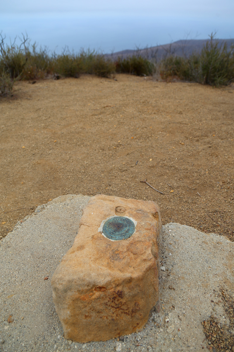 이 날의 하이킹에서 가장 높은 지점이었던 해발 1736피트(529 m)의 이름없는 산의 정상이다. 그래도 정상인데 찍을만 한게 없어서 1927년에 설치된 측지관측(geodetic survey) 기준점 표식을 멀리 바다를 배경으로 찍어봤다.