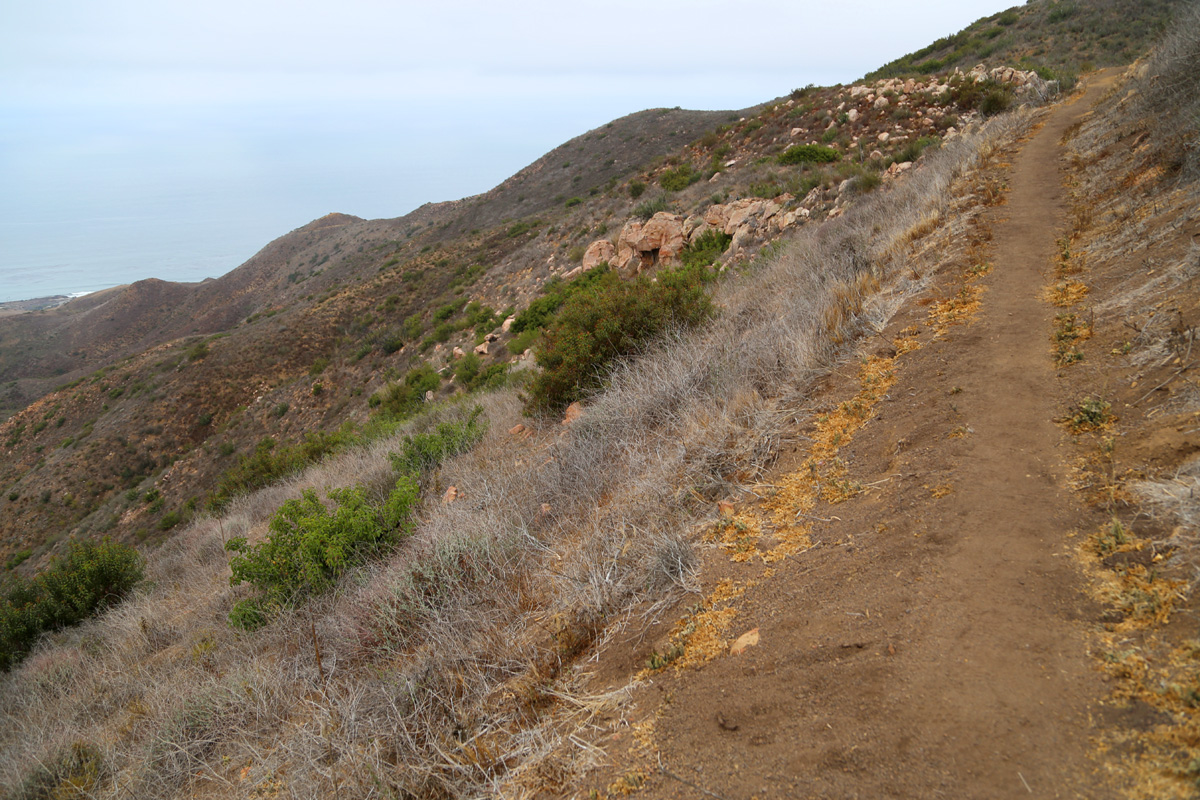 분지를 벗어나면 산사면을 따라 잘 만든 트레일이 나오고, 그 왼편으로 탁 트인 바다가 펼쳐지는데... 아침의 흐린 날씨 때문에 감동은 확실히 덜했다~ "역시 높은 산으로 갔어야 되나?"
