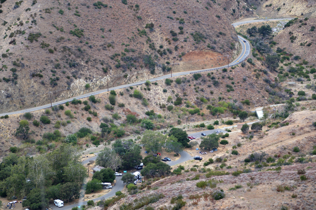 기다란 캠핑장을 따라 나란히 계곡을 달리는 저 도로는 멀홀랜드 하이웨이(Mulholland Highway)인데, 101번 고속도로 남쪽에 토팡가캐년 부근에서 시작되어 산타모니카 산맥의 능선을 따라서 50마일을 달리는 대표적인 경관도로(scenic road)로, 여기 레오까리요 주립공원에서 바닷가 1번도로와 만나면서 끝난다.