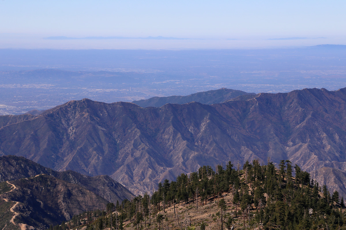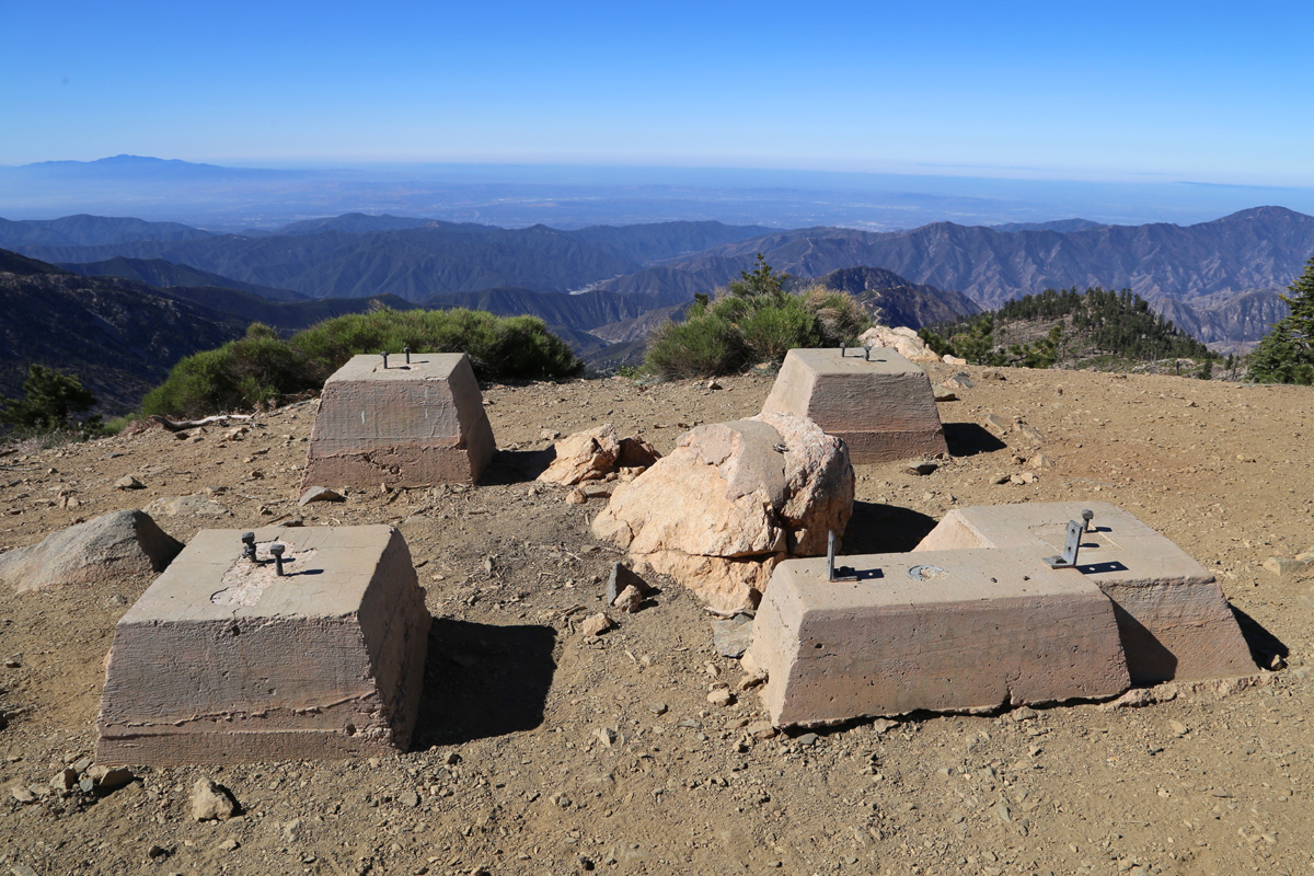 정상에는 다른 표식은 없고, 옛날 산불감시초소가 세워져 있었던 콘크리트 기단만이 남아서 앉아서 쉴 수 있게 해주었다. 남쪽으로 왼편에 멀리 보이는 산은 오렌지카운티의 해발 1,734 m의 산티아고피크(Santiago Peak)이고,
