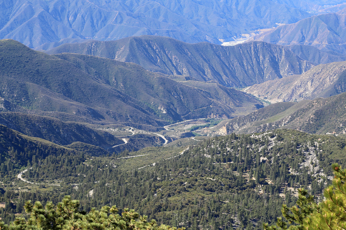 남쪽 바로 아래 골짜기는 앞서 언급한 캠핑장이 있는 크리스탈레이크 휴양지(Crystal Lake Recreation Area)로, 작년 5월에 코로나 와중에 가족이 함께 방문을 했던 곳이다. 아주사(Azusa)에서 39번 도로가 샌가브리엘 강(San Gabriel River)의 계곡을 따라서 저 휴양지까지 이어진다.