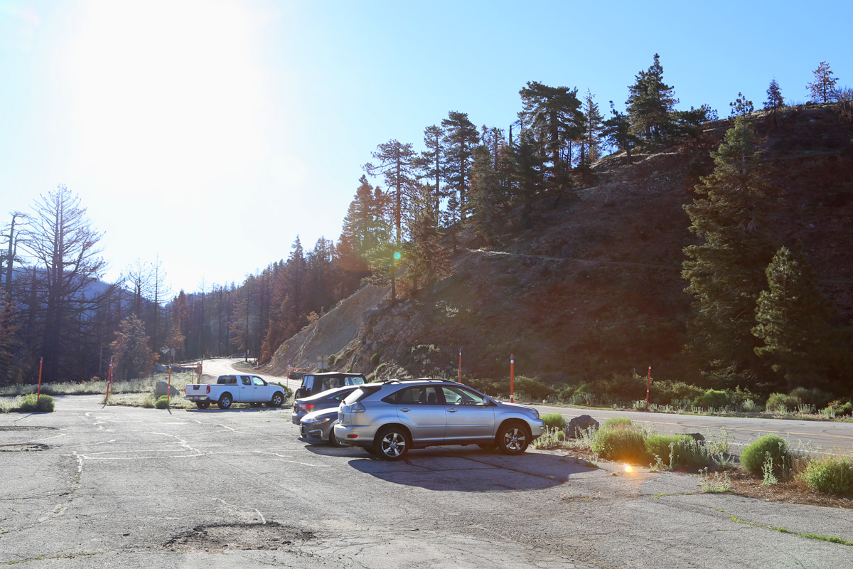 캘리포니아 2번 도로가 산속으로 이어지는 앤젤레스크레스트 하이웨이(Angeles Crest Highway)만 거의 1시간을 달려 도착한 이 주차장은 아이슬립새들(Islip Saddle)로 해발고도는 벌써 6,680피트(2,036 m)이다. 그런데 주차한 차들은 반드시 패스를 보여주라고 안내판 가운데 큼지막히 씌여있다.