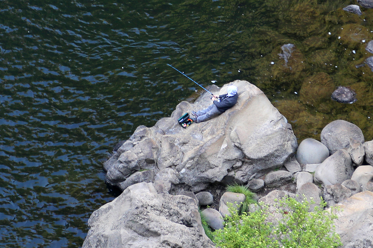 주차장에 세워져 있던 빨간 차의 주인분이 바위에 기대서 홀로 송어낚시를 하고 계셨다. 지금 만나러 갑니다...^^