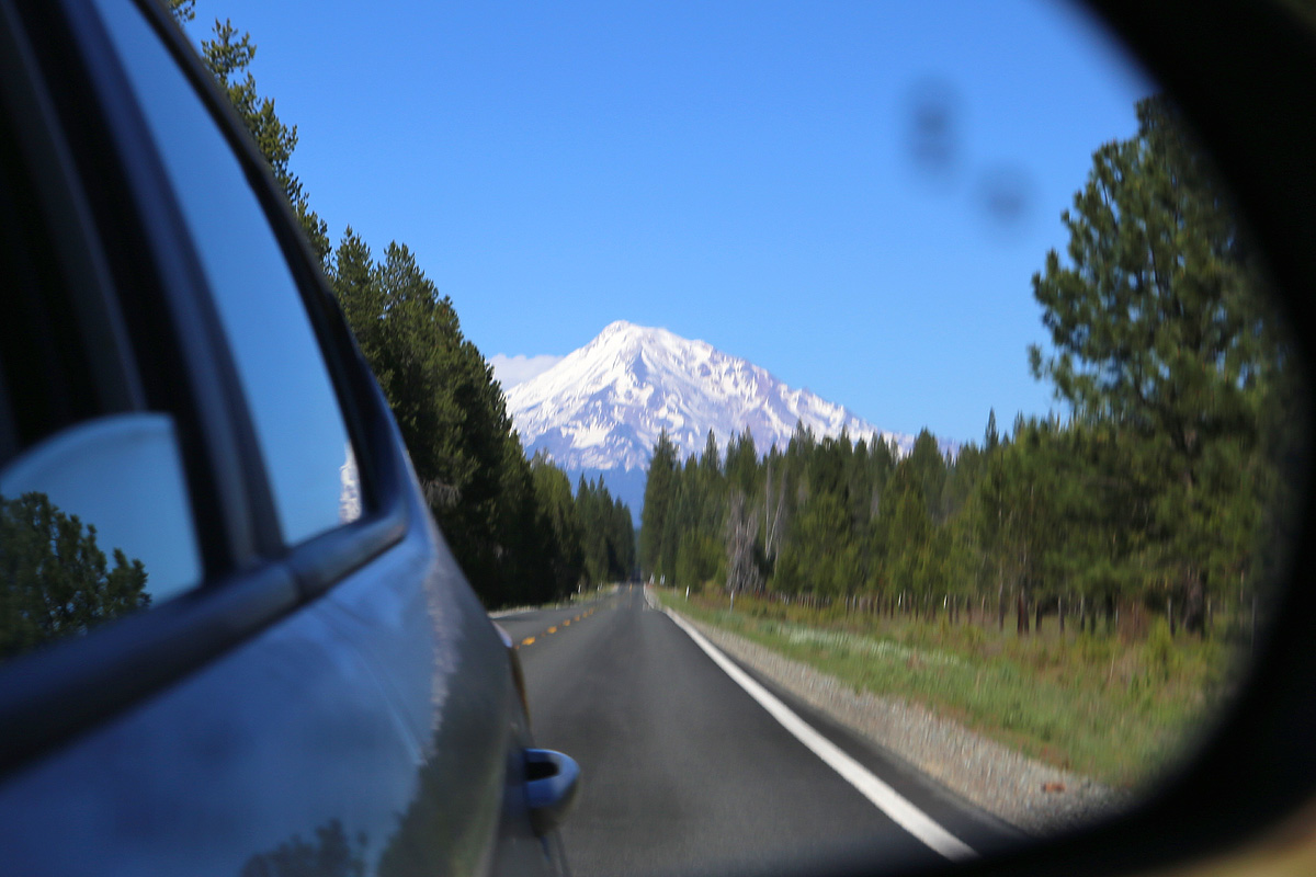 89번 도로가 남동쪽으로 방향을 틀자, 샤스타 산이 달리는 도로 바로 뒤로 우뚝 솟아오르는 장관이 펼쳐졌다. 그래서 아내가 오래간만에 또 사이드미러샷을 시전해서, 우리를 배웅하는 마운트샤스타의 거울에 비친 모습을 사진으로 남겨주었다. 이제 우리는 이 멋진 Volcanic Legacy Scenic Byway '국민도로'를 조금 더 달려서, 세계의 8번째 불가사의(Eighth Wonder of the World)를 찾아간다.