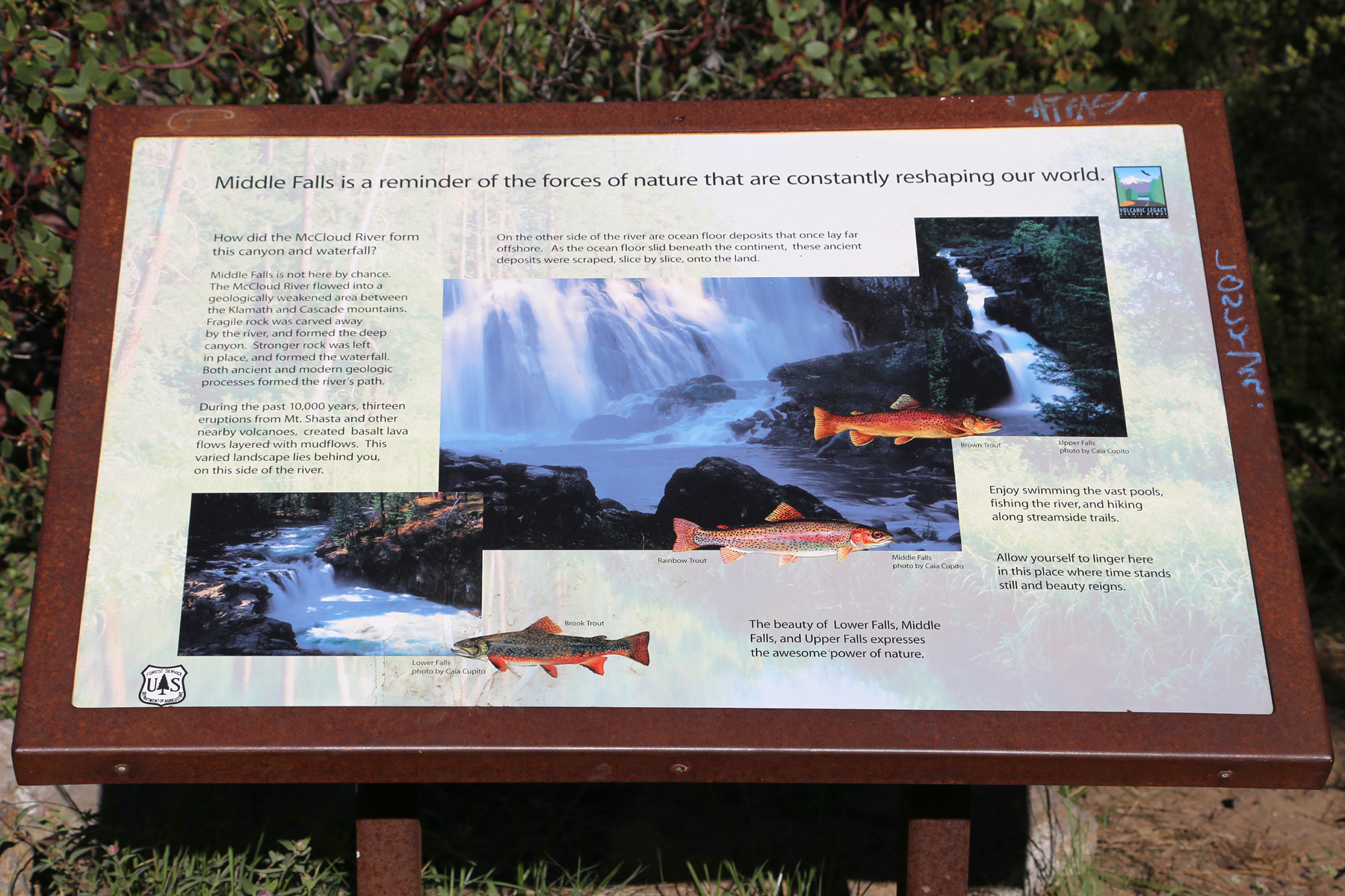 이 부근에는 강을 따라 3개의 폭포가 모여있는데, 상류의 어퍼폴(Upper Falls), 여기 미들폴(Middle Falls), 그리고 조금 떨어진 하류의 로워폴(Lower Falls)의 사진이 안내판에 오른쪽 위에서부터 차례로 표시되어 있다.