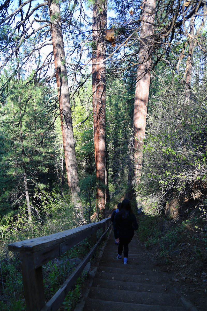 난간이 잘 만들어진 절벽 위의 전망대에서 바라본 '중간 맥클라우드 폭포(Middle McCloud Falls)'의 모습이다. 여기서 절벽을 따라 난간이 만들어진 트레일은 상류의 어퍼폴로 가는 길이고, 저 아래로 내려가려면 반대방향의 아래쪽으로 내려가는 트레일을 잘 찾아야 했다. 그런데 이 사진 아래쪽을 자세히 보시면...