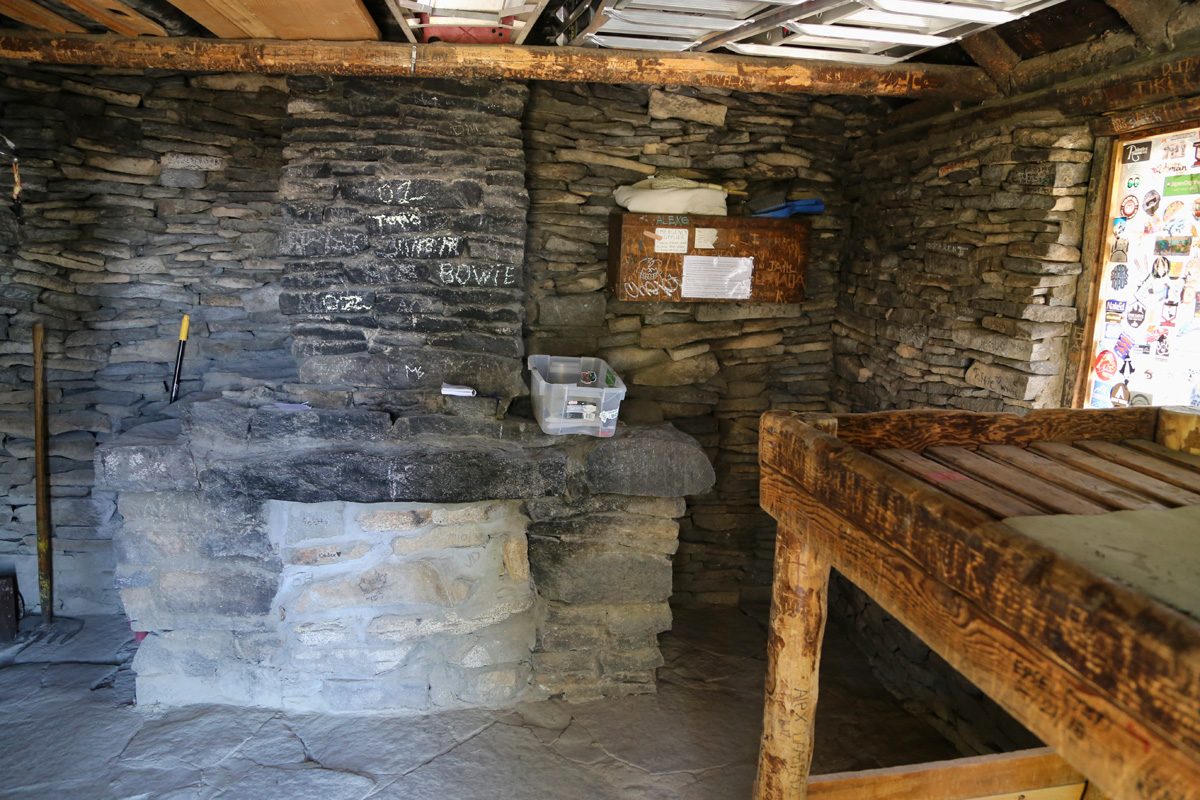 이 대피소는 CCC(Civilian Conservation Corps)에 의해서 1935년에 만들어졌는데, 안에는 2개의 이층침대가 좌우로 있고, 정상에는 없는 방명록들과 비상물품들이 구비되어 있다. 비록 벽난로는 산불의 위험 때문에 더 이상 사용할 수 없도록 막아버렸지만, 눈이 적당히 내린 날에 이 대피소를 찾게 된다면 참 낭만적(?)일 것 같았다.