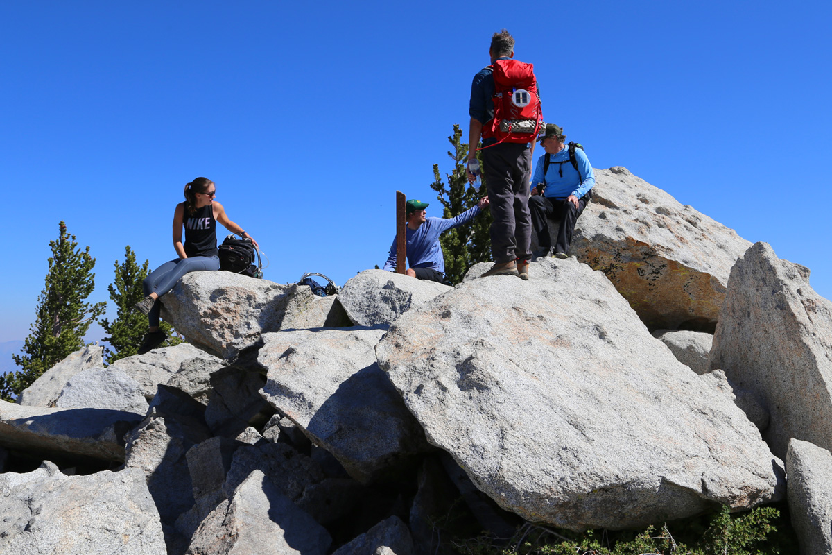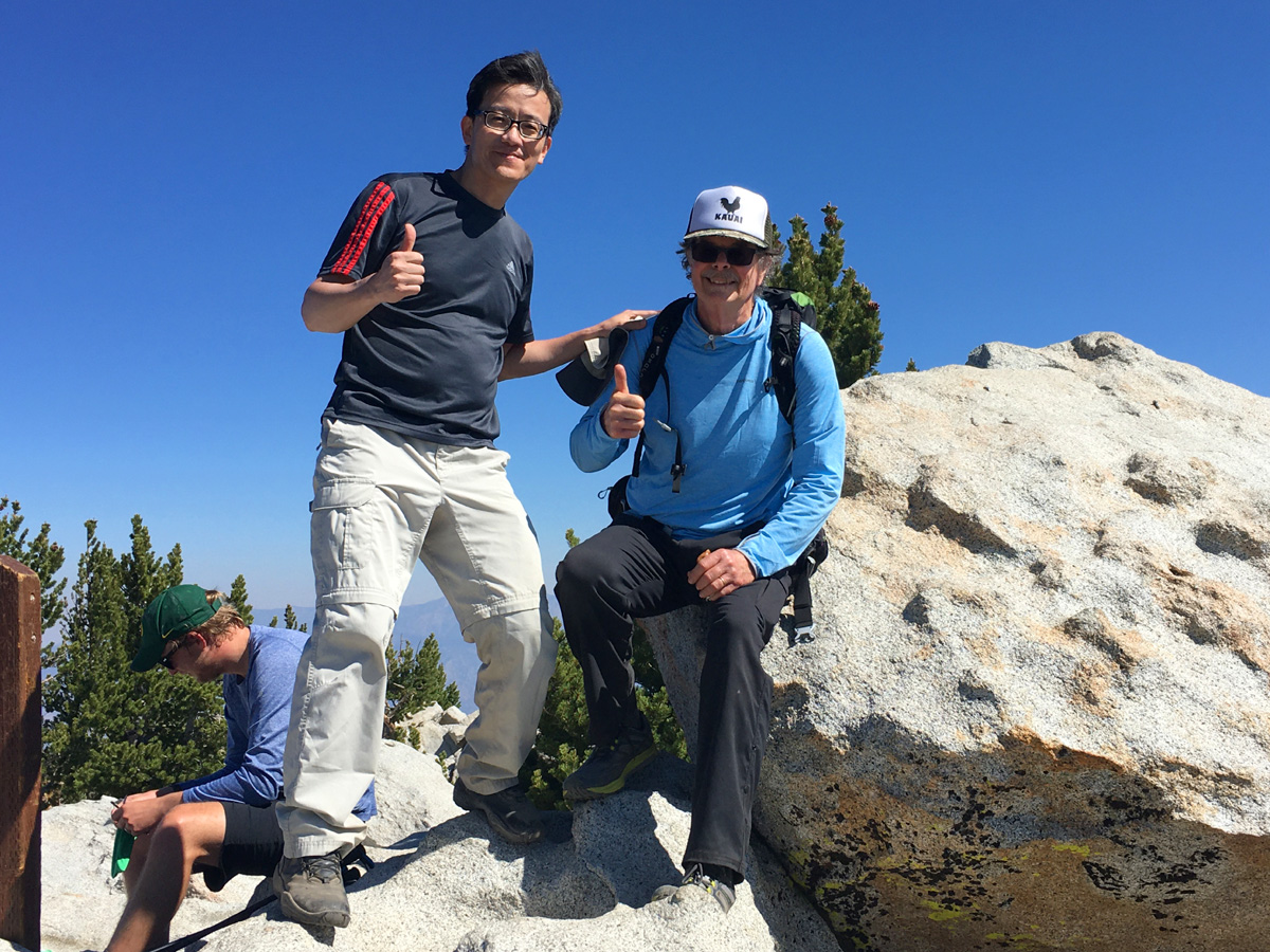 사진 가운데 나무기둥에 "Mt San Jacinto Peak, Elevation 10,834 ft" 표지판이 붙어 있었는데, 불과 몇 주 전에 사라졌다고... 정상까지는 휴식시간 포함해서 정확히 4시간반이 소요되었다. (구글맵으로 정상부근 지도를 보시려면 클릭)