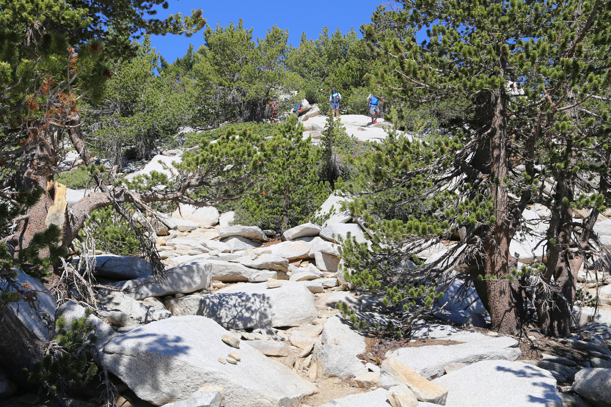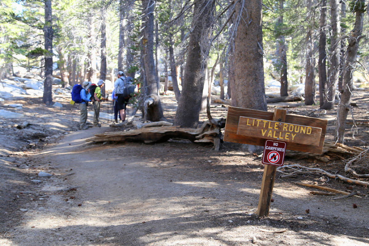 그들이 야영했다는 리틀라운드밸리(Little Round Valley) 캠핑장에 도착을 했는데, 앞쪽에 또 야영을 마치고 출발을 준비하는 한 무리의 하이커들이 보인다.