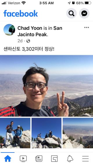 오래간만에 정상에서 셀카를 찍어서 실시간으로 페이스북과 인스타그램에도 올려봤다. (셀카 사진을 그냥 블로그에 포스팅하려니 너무 얼굴이 크게 나와서, 페이스북 화면을 캡쳐해서 올리는 것임^^)