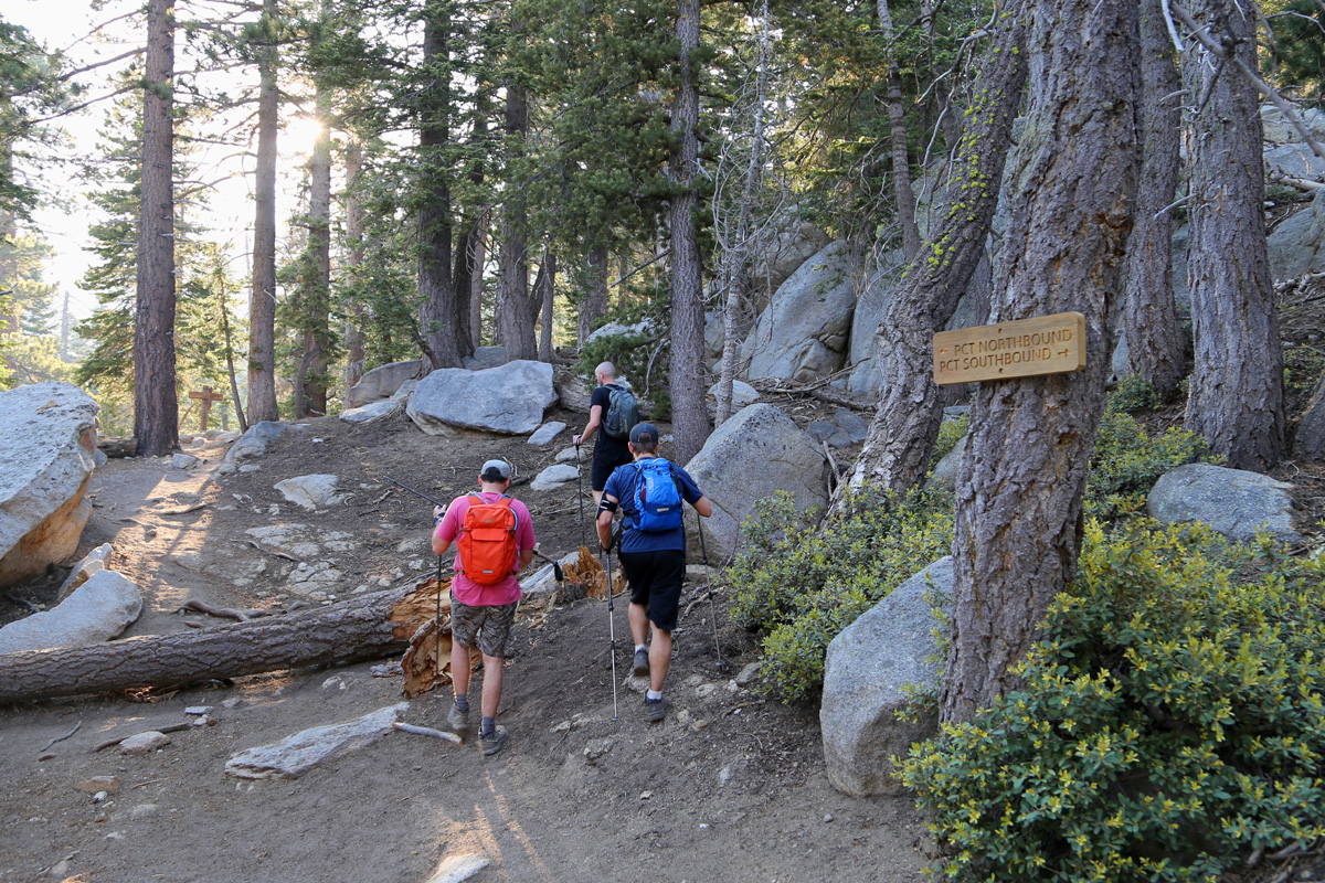 다시 50분 정도 걸어서 퍼시픽크레스트트레일(Pacific Crest Trail, PCT)과 만나는 삼거리에 도착을 했는데, 아무 생각없이 트레일을 따라 직진을 했더니 표지판의 남쪽방향(southbound)이었다. 사진 속의 3명 일행을 만나서 반대방향 북쪽으로 가야한다는 것을 알고 돌아서는 길이다.
