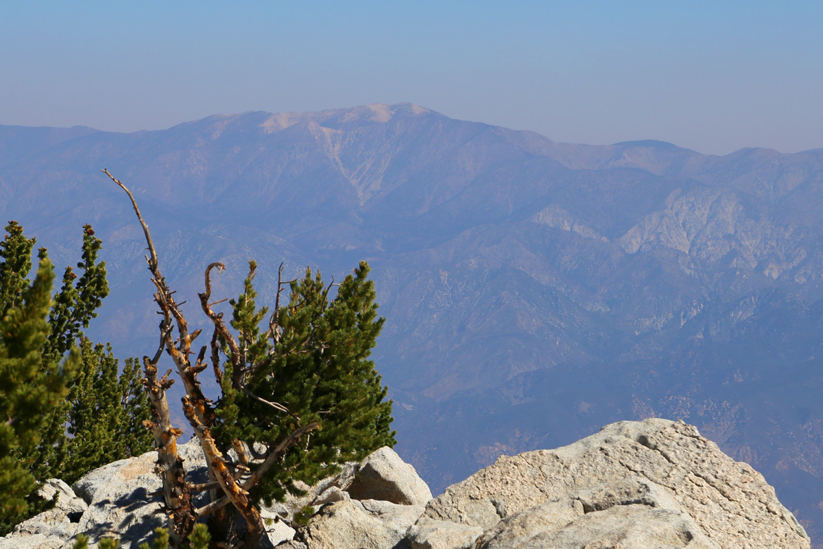 서쪽으로는 사람들이 많이 사는 오렌지카운티와 LA가 멀리 위치해서 그런지, 티 없는 파란 하늘 아래로 스모그가 심하게 깔려있다... 아마 백년전에 존뮤어가 여기 올랐을 때는 이런 스모그는 없었을거다~