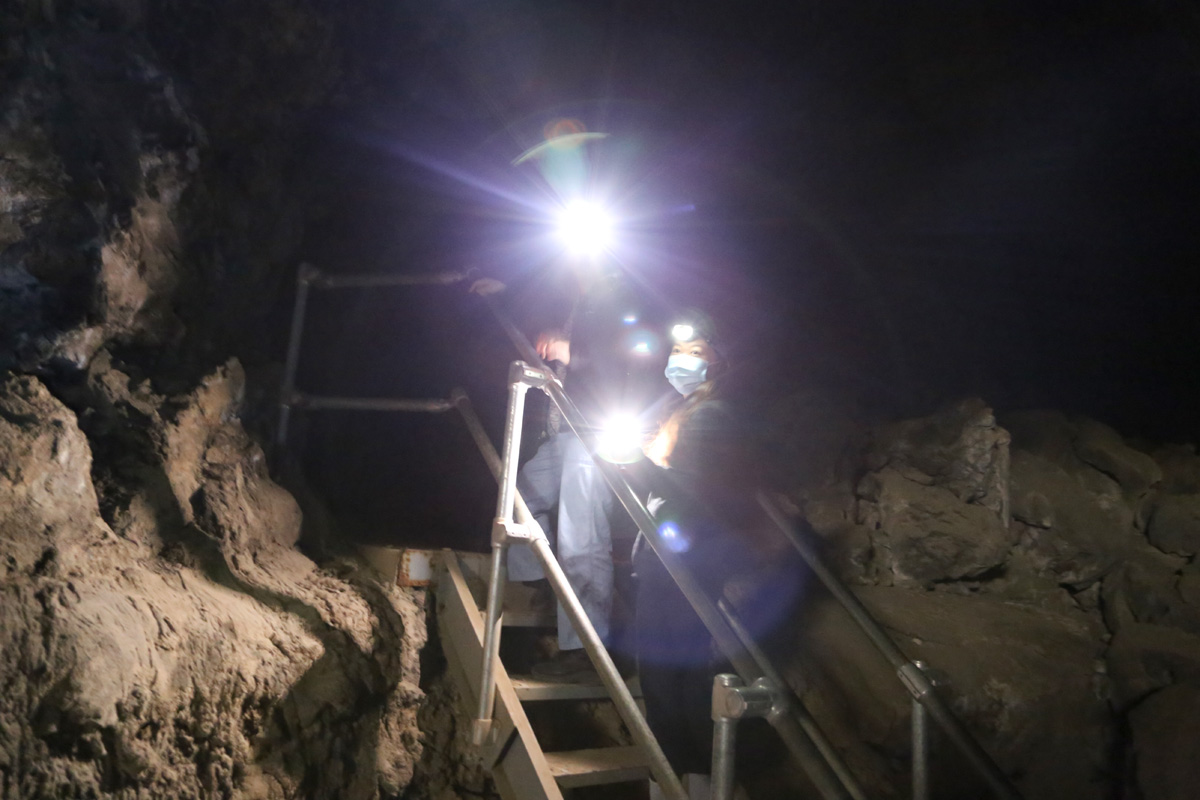 동영상에서도 보여드렸던 골든돔을 가리키는 연출사진인데, 아쉽게도 저 황금색은 사모님의 기대와는 달리 진짜 금(gold)은 아니고... 수분이 있는 동굴벽에 자라는 박테리아 때문에 금색으로 보이는 것이라고 한다.