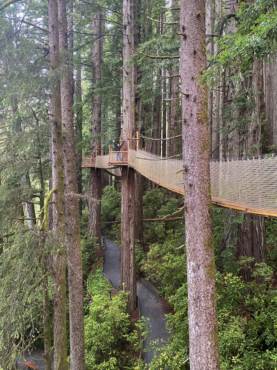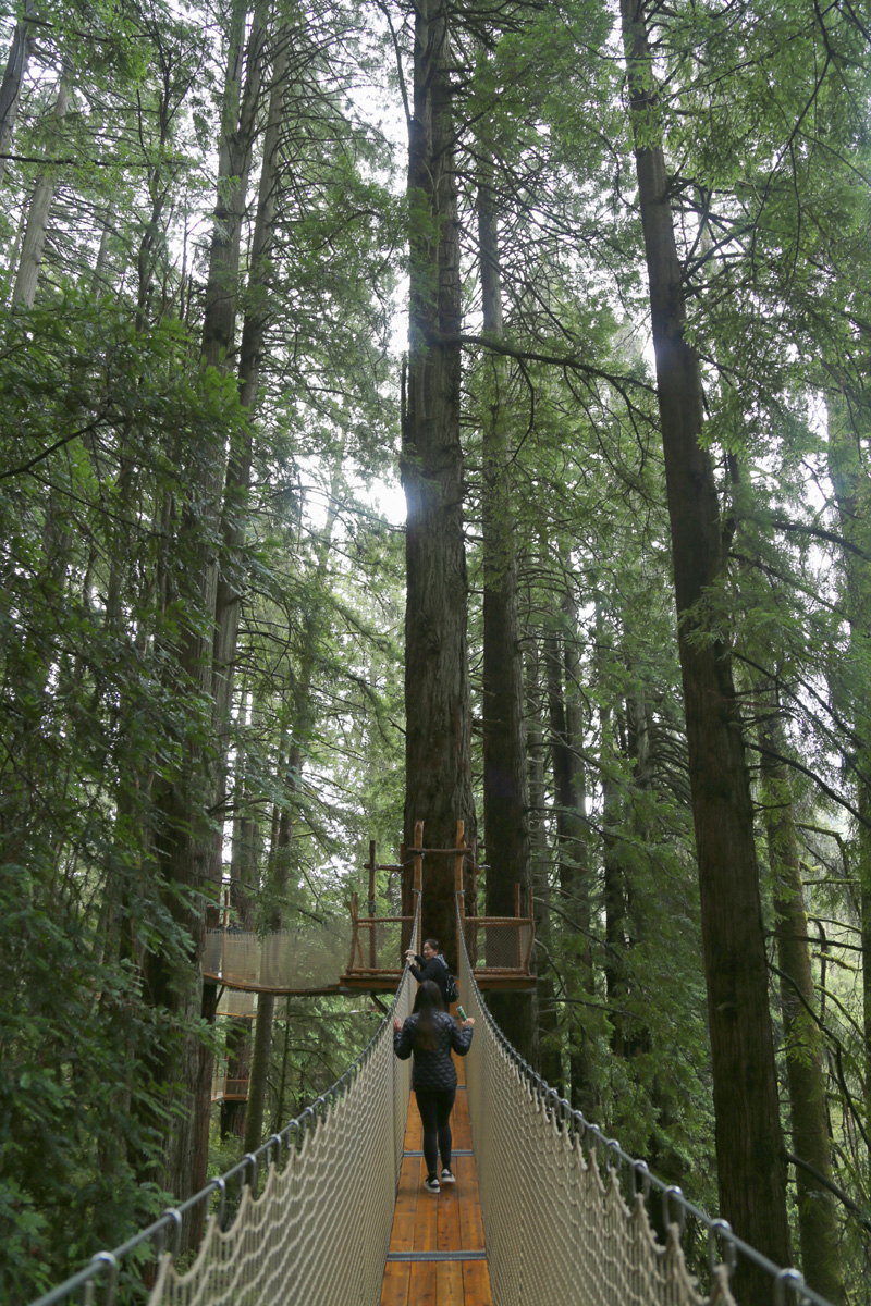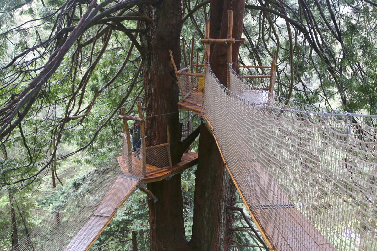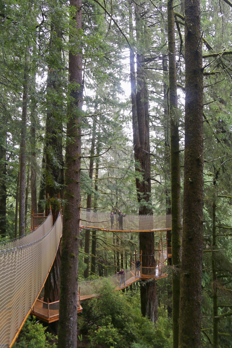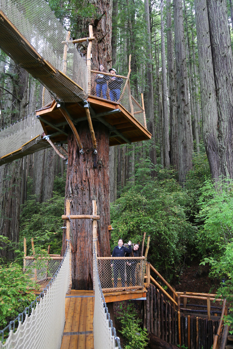 길이가 짧은 것은 8 m부터 긴 것은 40 m가 넘는 총 9개의 구름다리(suspension bridge)가 레드우드 나무들을 연결하고 있는데, 가장 높은 곳은 지상으로 부터 30 m가 넘는다고 한다.