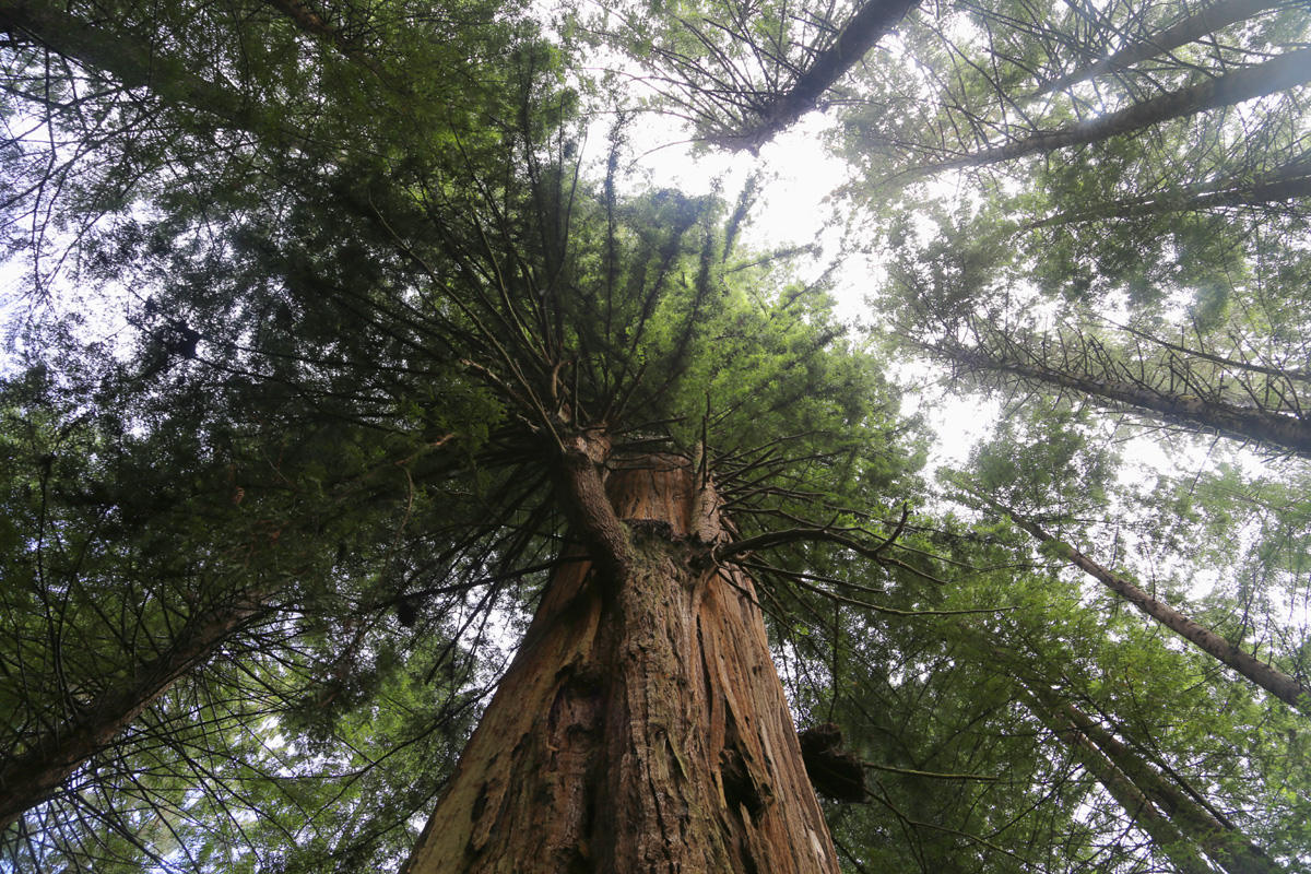캐노피트레일이 끝나는 곳에서 올려다 본 모습인데, 살아있는 나무에 큰 볼트를 박아서 받침대를 지지해놓은 것이 좀 안쓰럽기는 했지만 아주 재미있었다. 참고로 올해 6월초에 여기서 남쪽으로 100 km 정도 떨어진 유레카(Eureka)의 Sequoia Park Zoo에도 레드우드스카이워크(Redwood Sky Walk)라는 똑같은 구름다리 체험시설이 문을 열었다.