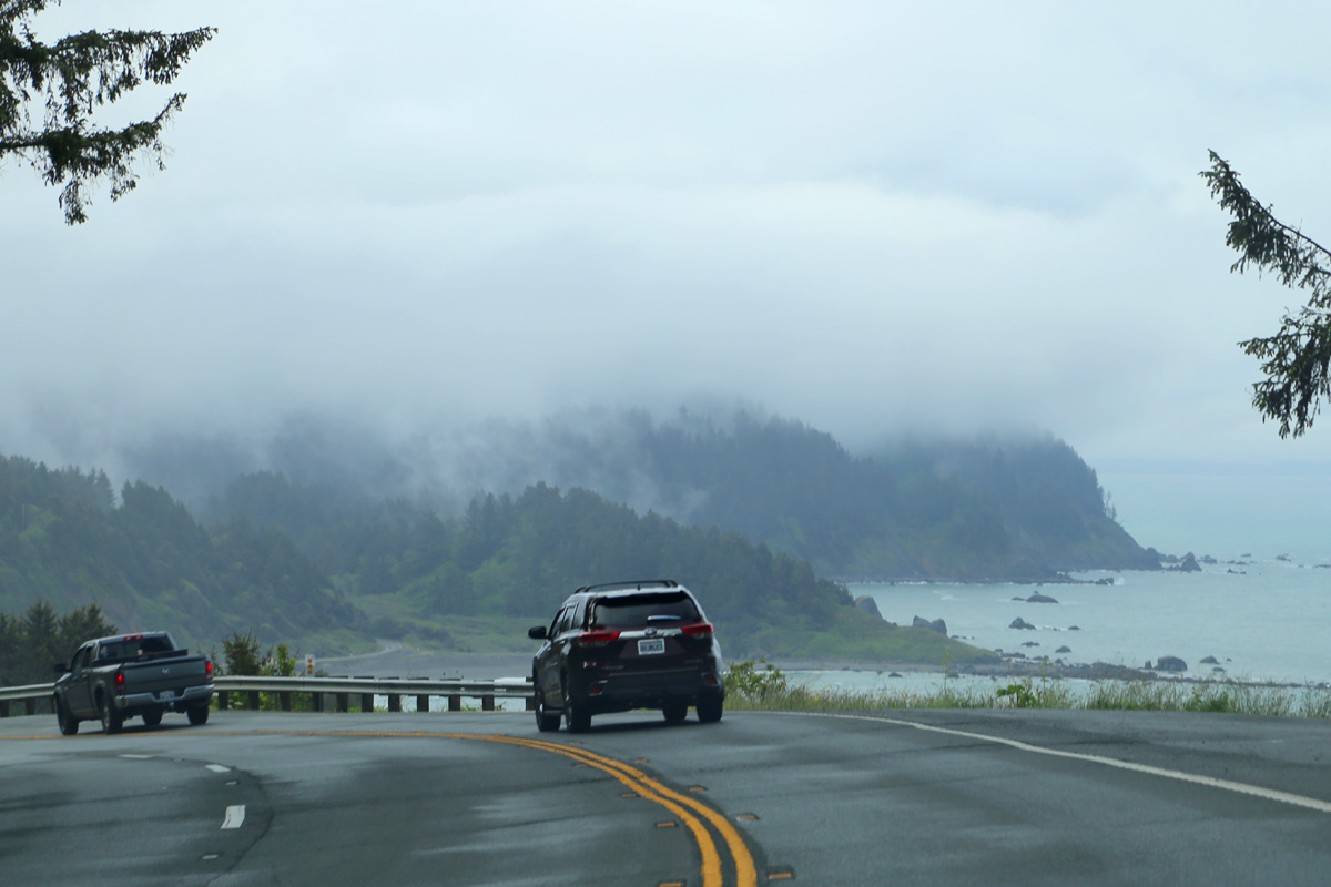 도로 너머로 살짝 보이는 멋진 폴스클래머스코브(False Klamath Cove)의 윌슨크릭비치(Wilson Creek Beach)가 제일 유명하다. 하지만 빠듯한 일정의 우리는 바닷가는 그냥 지나쳤고, 그러면 다시 숲속으로 101번 도로가 이어지면서 우리의 여행 5일째 첫번째 목적지가 바로 나온다.