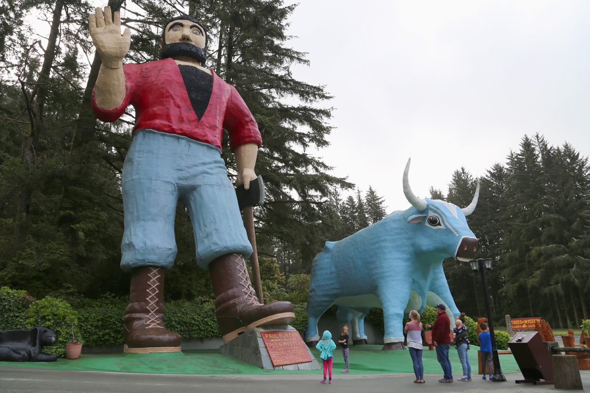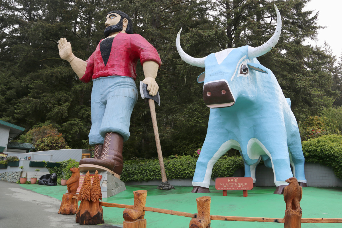 미국과 캐나다의 민간전설에 등장하는 거인 나무꾼, 폴버니언(Paul Bunyan, 폴 번얀)과 그의 소인 Babe the Blue Ox를 커다랗게 만들어 놓았는데, 나무꾼의 키가 15 m로 미국 전역에 많이 만들어져 있는 폴버니언의 형상들 중에서 가장 크다고 한다. 위키피디아에서는 그를 French-Canadian American으로 소개했는데, 샛파란 눈동자와 구레나룻 턱수염이 특징이고 빨간 상의 안의 까만색도 속옷이 아니라 가슴털이다~^^