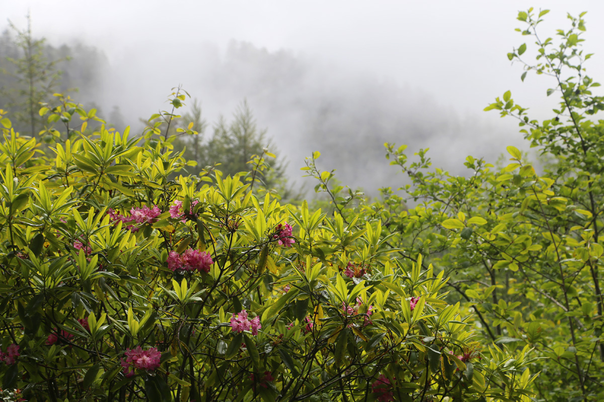 뒤쪽으로는 구름이 옅어지면서 언덕을 넘어가고 있었고, 전편에서 소개했던 '만병초' 나무가 꽃을 피우고 있었다.