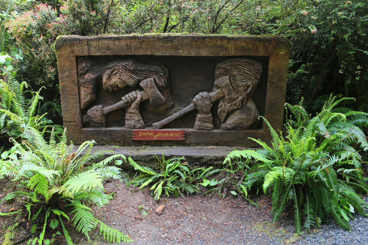 이 공원의 마지막 트레일 코스로 Trail of Tall Tales라는 길이 시작되는데, 전편에 소개해드렸던 거인 나무꾼 폴버니언(Paul Bunyan)과 그의 친구들 이야기를 나무로 조각해놓은 것을 음성설명과 함께 보실 수 있는 길이다.