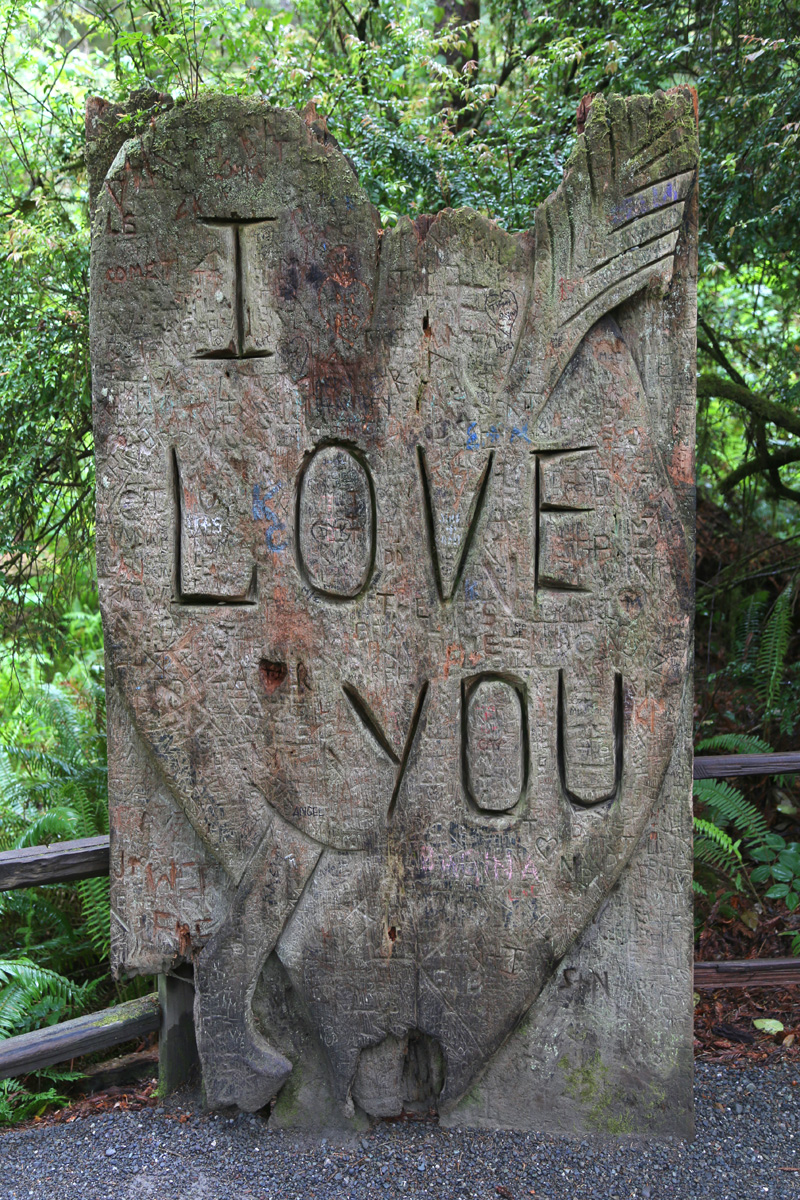 처음부터 손님들이 나무에 이름을 새기는 것을 허용했는지? 아니면 어쩌다 보니 그렇게 되었는지는 모르겠지만, 여러 부분이 부서지기 시작한 이 "I LOVE YOU" 나무판은 곧 다른 조각으로 교체되지 않을까 싶다.