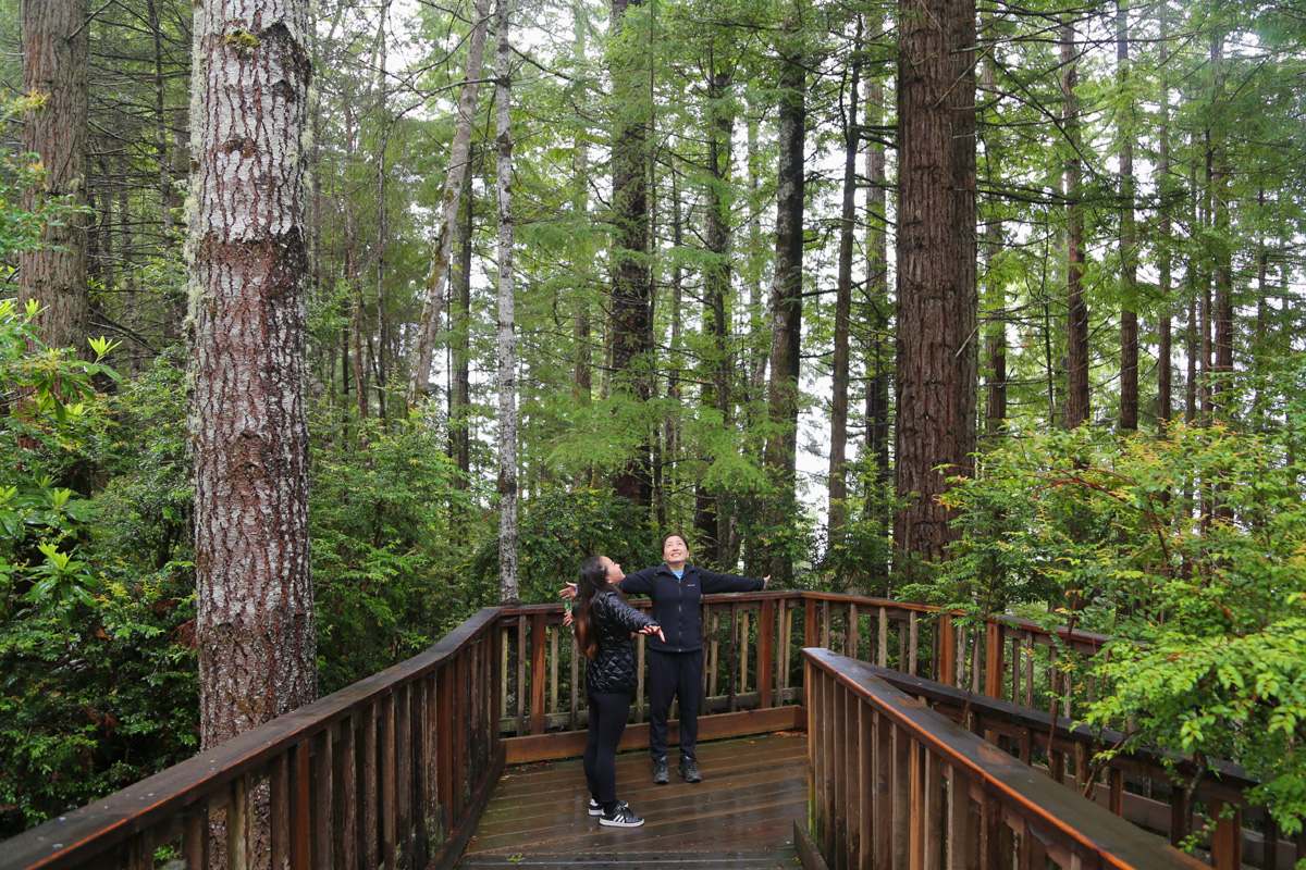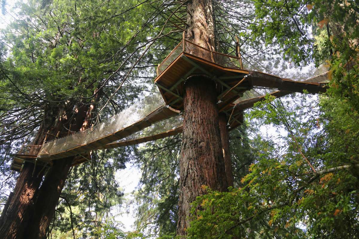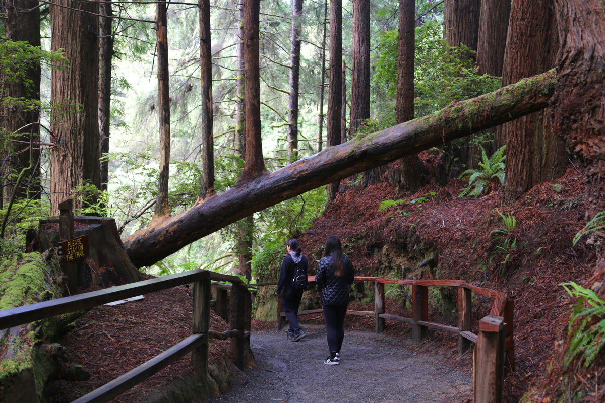 역시 1부에서 소개해드렸던 레드우드 나무에 매달린 구름다리들인 캐노피트레일을 한 번 올려다 본다.