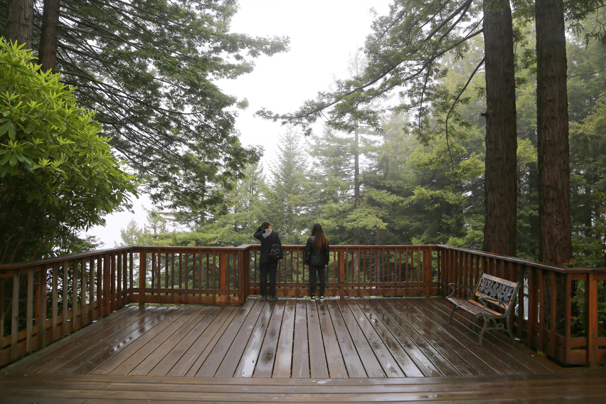 날씨가 맑은 오후에는 여기서 아래로 태평양이 내려다 보인다고 하지만, 바다는 안 보여도 더 없이 좋았다. 특히 언덕 조금 아래에서 자라는 레드우드들의 꼭대기 모습을 정면 눈높이에서 감상하는 것 만으로도 올라온 보람이 있었다.