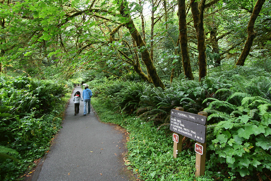 풋힐트레일(Foothill Trail)과 연결되는 삼거리인데, 저리로 걸어가면 뭐가 있을까? 정답은... 큰 나무들(big trees)~