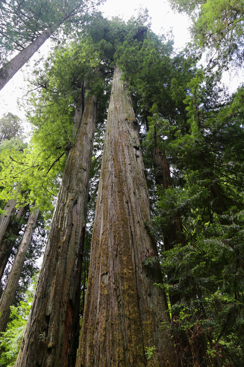 걸어가다가 고개를 들어서 위를 보니까, 마치 용오름처럼 하늘로 솟아있는 빅트리 레드우드가 보인다.