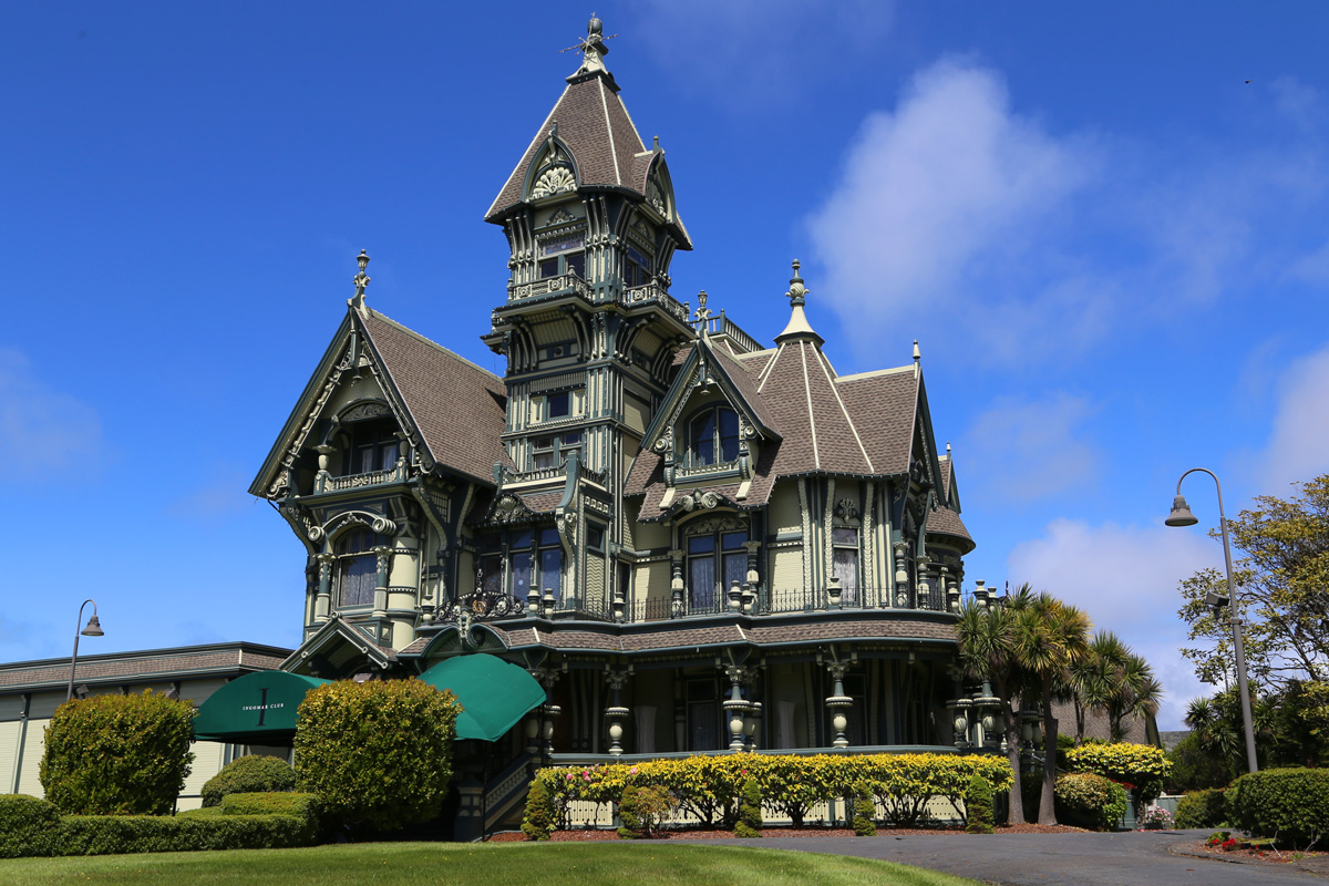 하지만 아무리 급해도 이 곳은 잠시 들러서 구경을 했다. (구글맵으로 위치를 보시려면 클릭) 유레카 올드타운에 1886년에 건설된 카슨맨션(Carson Mansion)은 미국에서 가장 유명한 빅토리아 양식(Victorian Style), 특히 그 중에서도 미국식 퀸앤스타일(American Queen Anne Style)의 주택이다. 현재는 Ingomar Club이라는 개인단체의 소유라서 내부를 구경할 수는 없는데, 여기를 클릭해서 홈페이지의 사진들을 보실 수는 있다.