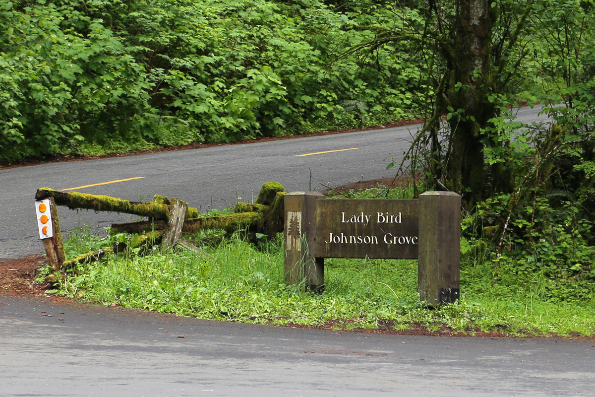 같은 장소의 사진 오른편에 보면 기념동판이 보이는데, 영부인에서 물러난 1969년 8월 27일에 리처드닉슨(Richard Nixon) 대통령과 함께 다시 여기에 와서, 이 레드우드 서식지를 그녀의 공적을 기려서 레이디버드존슨 그로브(Lady Bird Johnson Grove)로 명명했다는 내용이 새겨져 있다.