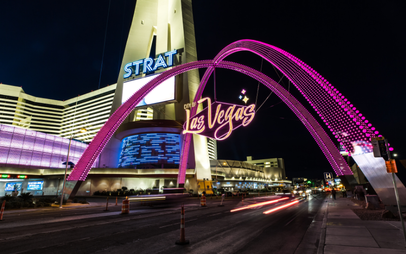 갑자기 밤이 된 것은 아니고... 지나가면서 찍은 사진이 없어서, 인터넷에서 가져왔다. 작년 11월에 새로 만들었다는 Las Vegas Boulevard Gateway Arches로 두 개의 아치가 X자 모양으로 교차하기 때문에 복수형으로 부르는 모양이다. 그리고 옛날에 바로 뒤로 보이는 스트라토스피어(Stratosphere) 호텔의 100층 높이 전망타워에서 결혼 10주년 저녁을 먹었었는데, 이제는 공식적으로 호텔의 이름을 짧게 스트랏(STRAT)으로 변경을 한 모양이었다.