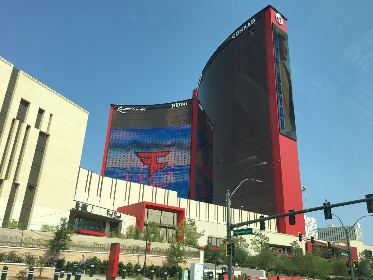 아침 5시반 조금 지나 출발을 해서 중간에 바스토우(Barstow)에서 화장실만 들리고 천천히 달려 10시 정도에 Las Vegas South Premium Outlets의 아이홉(IHOP)에 도착해 아침을 먹었다. 그리고는 "Welcome to Fabulous Las Vegas" 사인을 지나 스트립(Strip)을 따라서 호텔들을 구경하면서 북쪽으로 올라가는데, 윈(Wynn) 호텔을 지나서 도로 왼편으로 공사를 끝낸 커다란 건물이 눈에 들어왔다.
