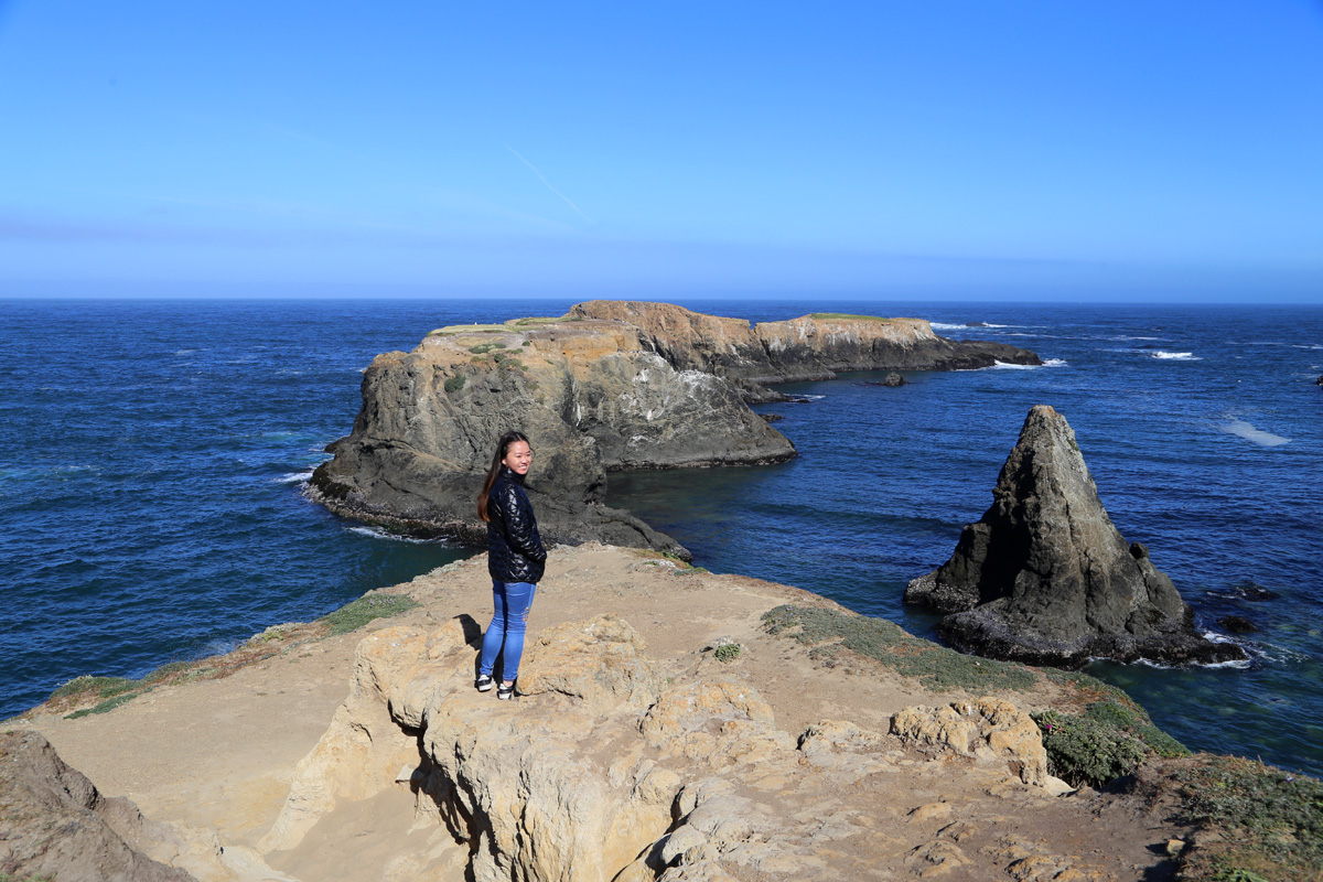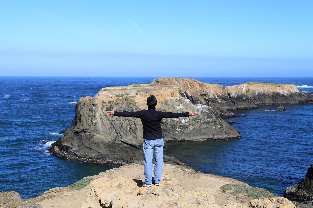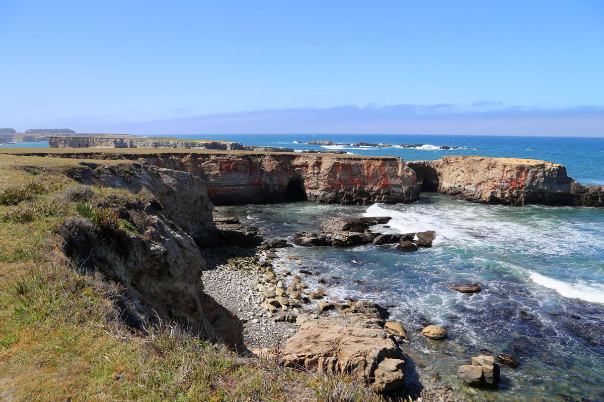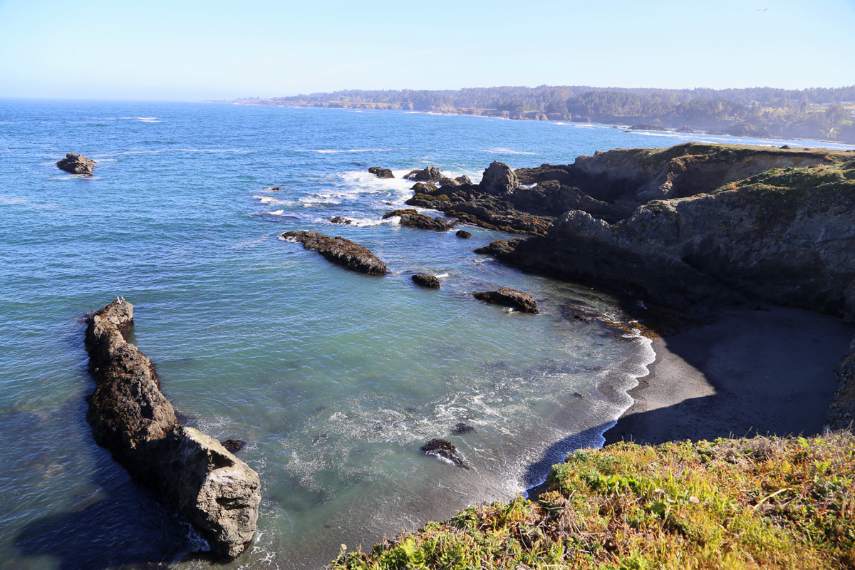 전날 숙박한 포트브래그부터 제일 아래 소개하는 포인트아레나까지 모든 해안과 내륙은 행정구역상 멘도시노카운티(Mendocino County)에 속한다. 그래서 예의상 카운티 이름이 들어간 멘도시노헤드랜즈 스테이트파크(Mendocino Headlands State Park)를 먼저 들러보기로 했다. '헤드랜드(headland)'는 말 그대로 머리처럼 툭 튀어나온 육지로 순우리말로 '곶' 한자어로는 '갑(岬)'과 같다. (구글맵으로 위치를 보시려면 클릭)
