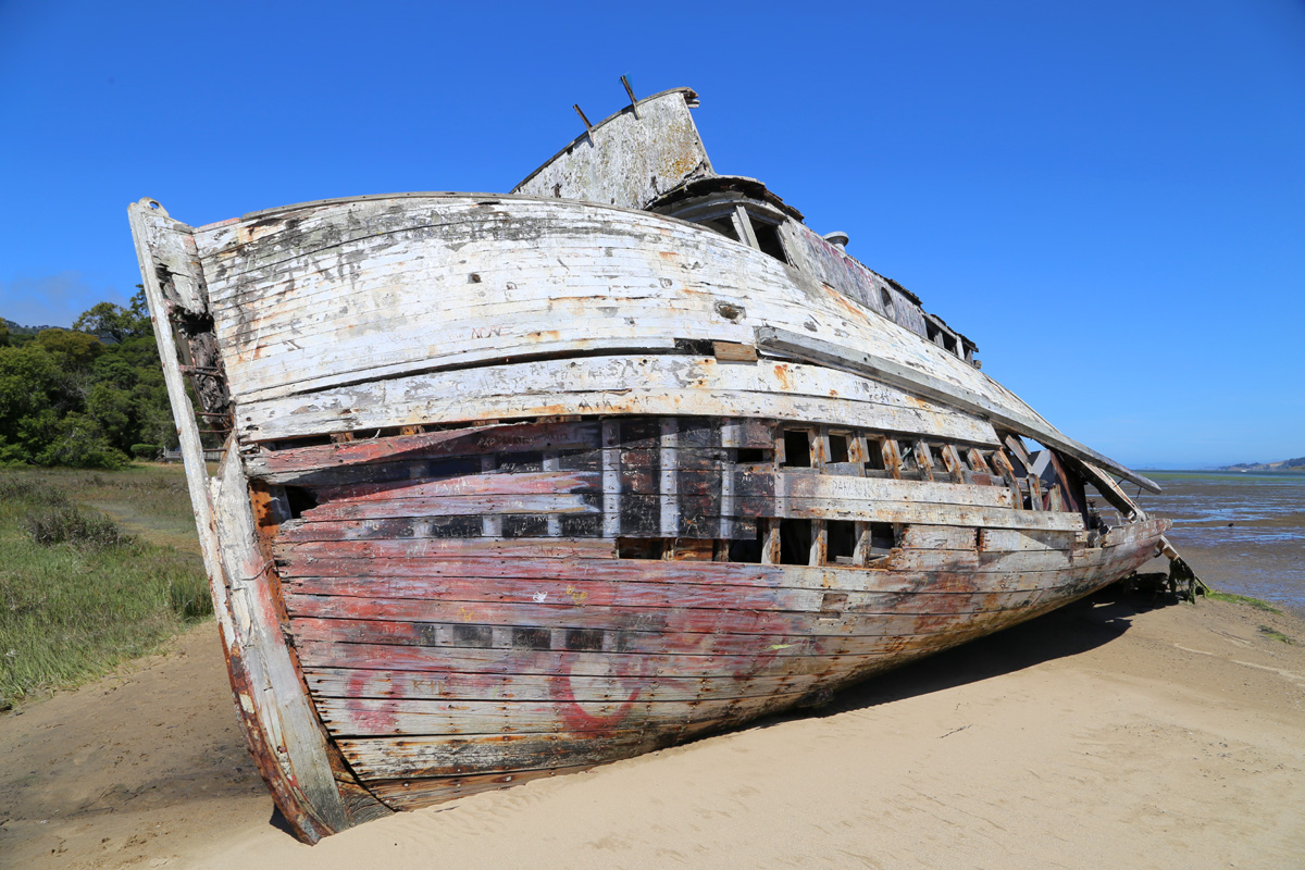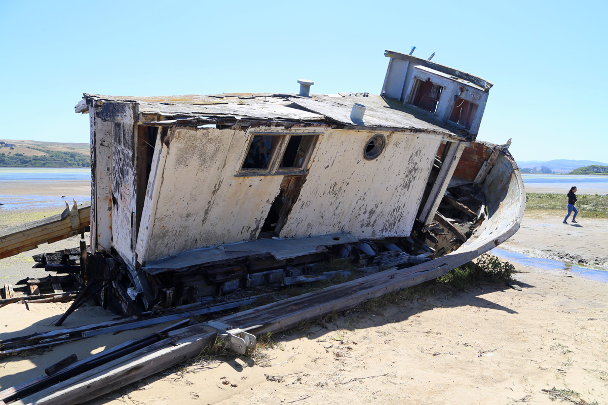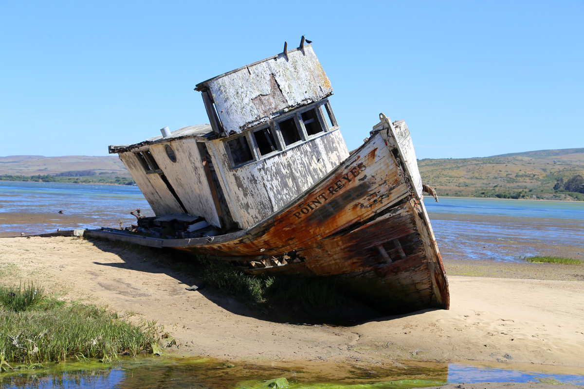 배에 새겨진 이름도 'POINT REYES'인데 정확히는 난파한 것은 아니고, 낚시배의 주인이 수리를 위해 육지로 끌어올렸다가 포기하고 방치된 것이라 한다. 그 후에 개펄을 청소하는 과정에서 철거될 뻔 했지만 지역 사진사와 인터넷의 힘 덕분에 사진작품의 명소로 떠오르면서 유지가 되었다고 한다.