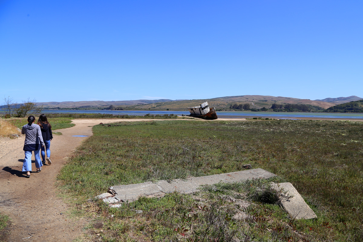 왼편 뒤로 멀리 보이는 보데가베이(Bodega Bay)로 나가서 태평양을 누비던 옛날을 회상하며, 곧 다가올 최후를 기다리는 난파선의 모습이 왠지 뭉클했다~ 우리가 떠날 때 다른 한 팀도 이 배를 보기 위해서 다가왔으니, 노후가 외롭지는 않아서 다행이라는 생각도 들었다. 난파선의 말년을 걱정해주는 것을 보니, 위기주부도 나이가 들어가나 보다...