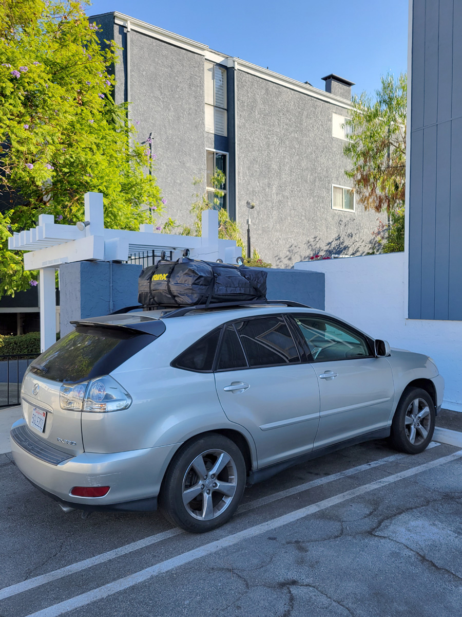 10월 8일 아침, LA 지역에서 마지막으로 2년여를 살았던 엔시노(Encino)의 집앞에서 이삿짐을 가득 싣고 출발하기 직전의 모습이다. 옛날 2009년에 30일간의 자동차여행에서 사용했던 '봇짐'을 차 위에 올리고, 또 거기에 바퀴 4개가 달린 짐운반 카트까지 함께 붙들어 메고는 출발을 했다.
