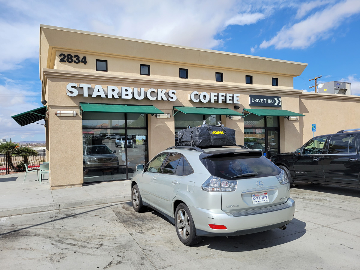 출근시간 정체 때문에 2시간 정도 걸려서 바스토우의 별다방에 도착을 해서 커피와 베이글로 간단히 늦은 아침을 먹었다. 이전의 블로그 포스팅과는 달리 자동차 번호판 모자이크를 하지 않은 이유는, 지금 저 차는 캘리포니아가 아니라 새로 받은 버지니아 번호판을 달고 이 글을 쓰는 창밖에 서있기 때문이다.^^