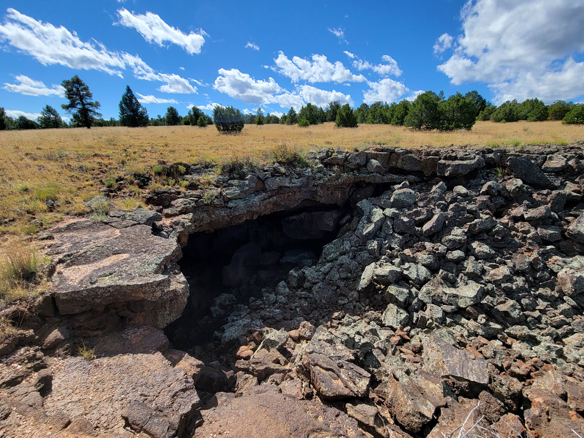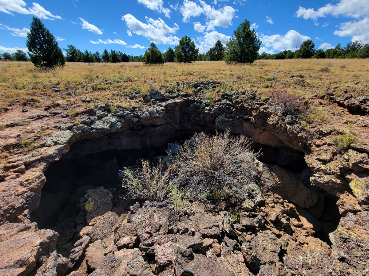 이렇게 땅이 꺼져서 동굴이 만들어진 것을 볼 수 있다. 바로 옛날에 용암이 흘렀던 곳에 만들어지는 라바튜브(lava tube)인데, 공원의 이름인 스페인어는 영어로 "The Badlands" 즉 황무지라는 뜻이라고 한다.