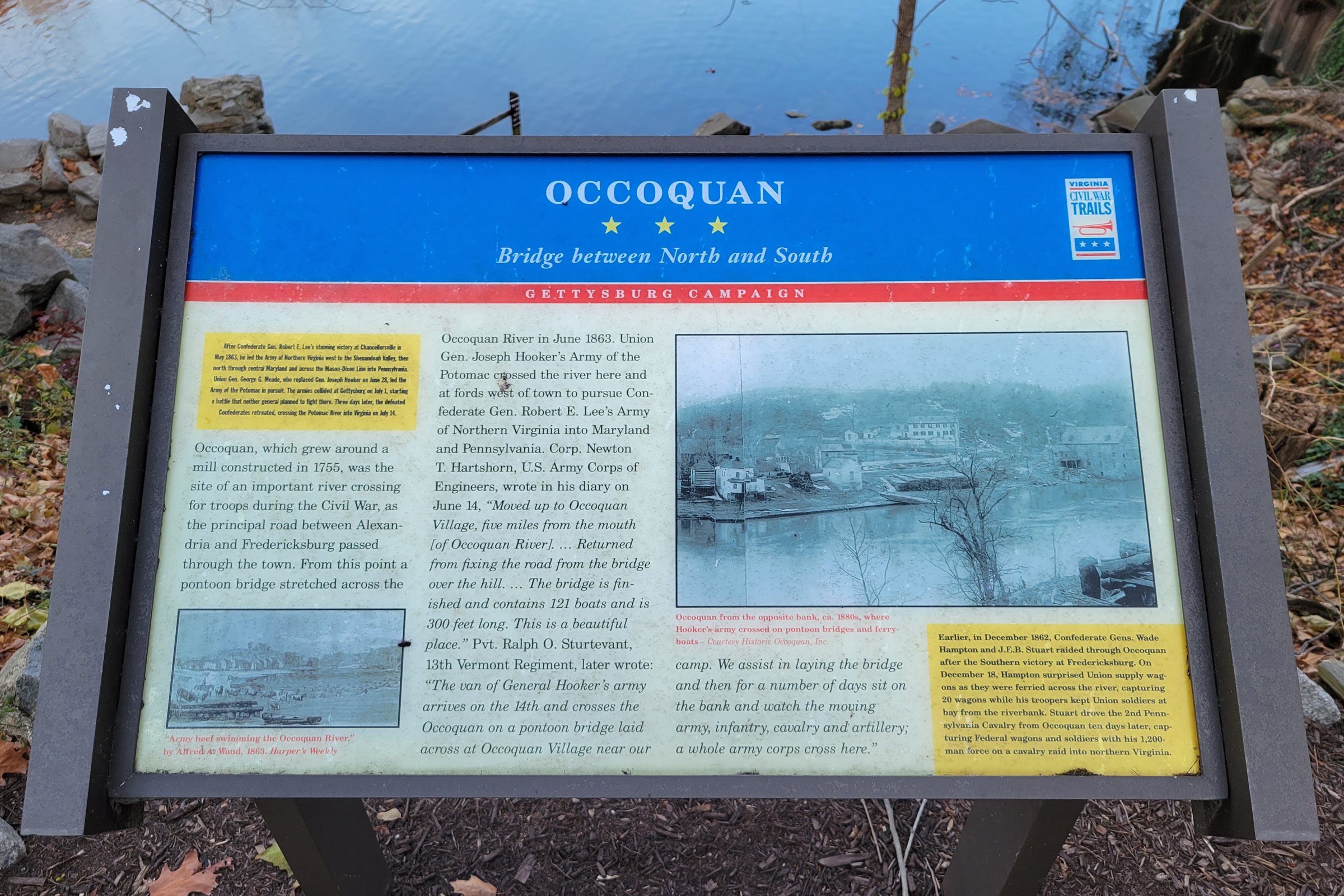 또 미국의 남북전쟁 당시에 이 마을이 강을 건너는 중요한 통로 역할을 했다는 안내판이 세워져 있는데 (클릭해서 원본보기로 읽으실 수 있음), 버지니아의 관광지와 명소들을 제대로 돌아보려면 제임스타운부터 남북전쟁까지의 미국의 역사에 대한 이해가 필수인 것 같다... 옛날에 재밌게 봤던 이원복 교수의 만화 <먼나라 이웃나라> 미국 역사편이라도 다시 찾아서 읽어야 할 듯~^^