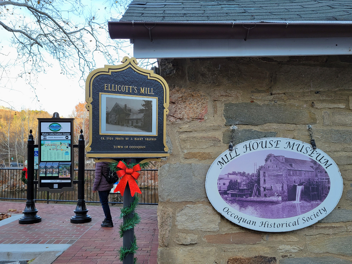 이 마을은 1760년경에 만들어졌던 엘리코트의 방앗간(Ellicott's Mill House)으로 제일 유명했는데, 미국땅에서 최초로 대형으로 만들어진 '자동화된 제분소(automated grist mill)'였다고 한다. 아쉽게도 175년간 잘 동작하다가 1930년대에 화재로 흑백사진에 보이는 강가의 큰 건물은 모두 불타서 사라지고, 지금 박물관으로 사용되는 벽돌건물만 남아있다.