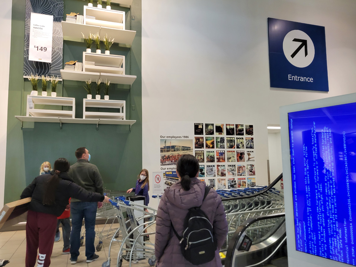 전세계 이케아의 거의 다 똑같은 매장 입구사진을 쓸데없이 올린 이유는, 안내화면이 오류가 나서 떠있는 윈도우 XP의 '블루스크린'을 오래간만에 본 것이 너무 재미있었기 때문이다.