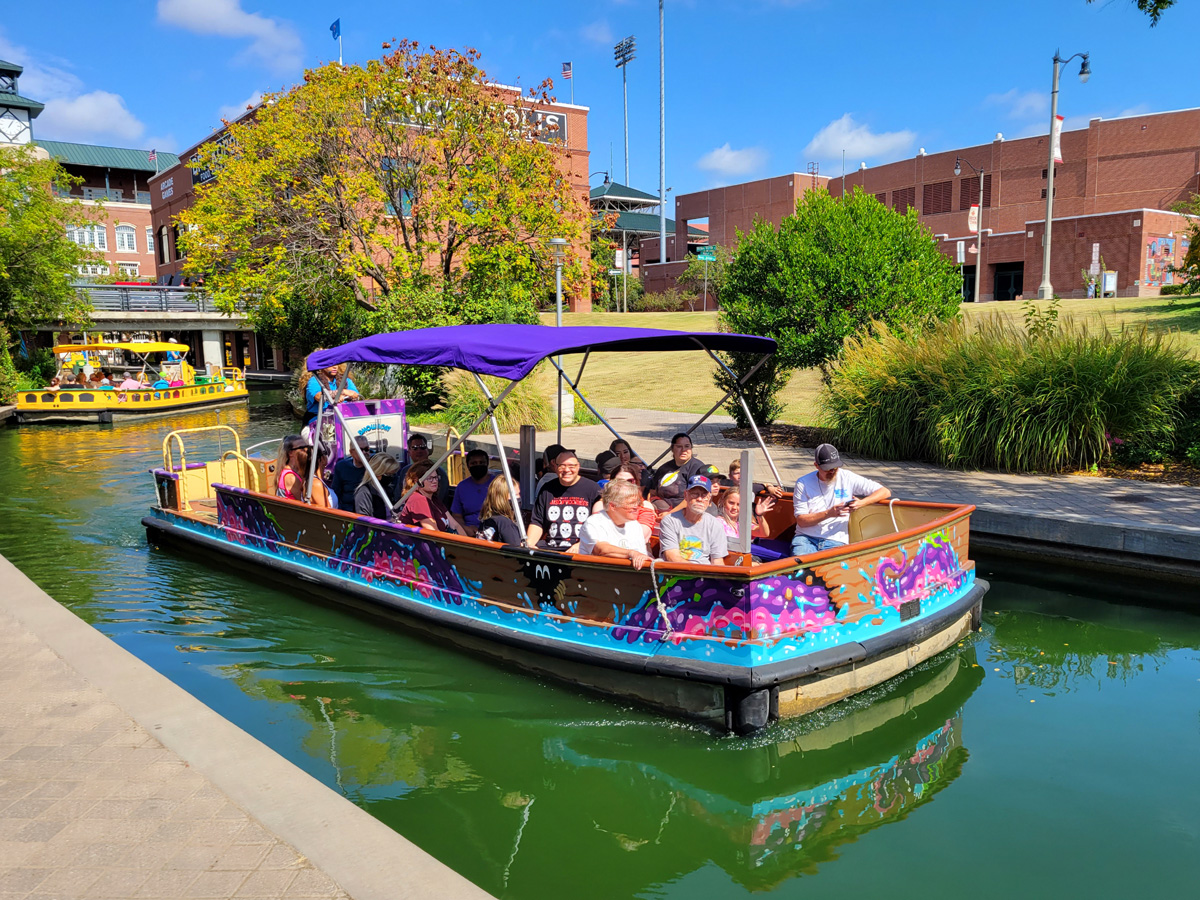 레스토랑 옆으로는 브릭타운 운하(Bricktown Canal)가 있어서, 관광객들을 태운 수상택시가 그 물길 위로 천천히 떠다니고 있는 평화로운 풍경이었다. (구글맵으로 위치를 보시려면 클릭) 뒤로 보이는 조명탑이 서있는 갈색 건물은 마이너리그 야구장인 Chickasaw Bricktown Ballpark인데, 홈팀 이름이 오클라호마시티 다저스(Oklahoma City Dodgers)란다~