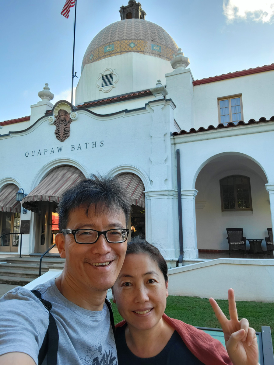 목욕탕 앞에서도 커플셀카 인증샷 한 장 찍었는데, 쿼포(Quapaw)는 이 지역에 살던 원주민들의 이름이라고 한다. 목욕탕이 문을 열기 전에 줄을 서지 않으면 많이 기다려야 한다고 해서 일찍 왔지만, 아직 다른 기다리는 사람도 전혀 없고 해서 아래쪽까지 다 둘러보고 다시 오기로 했다.