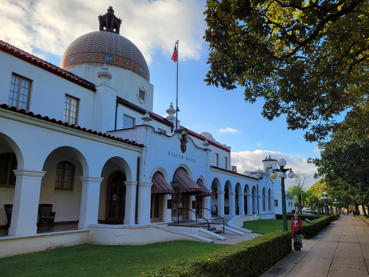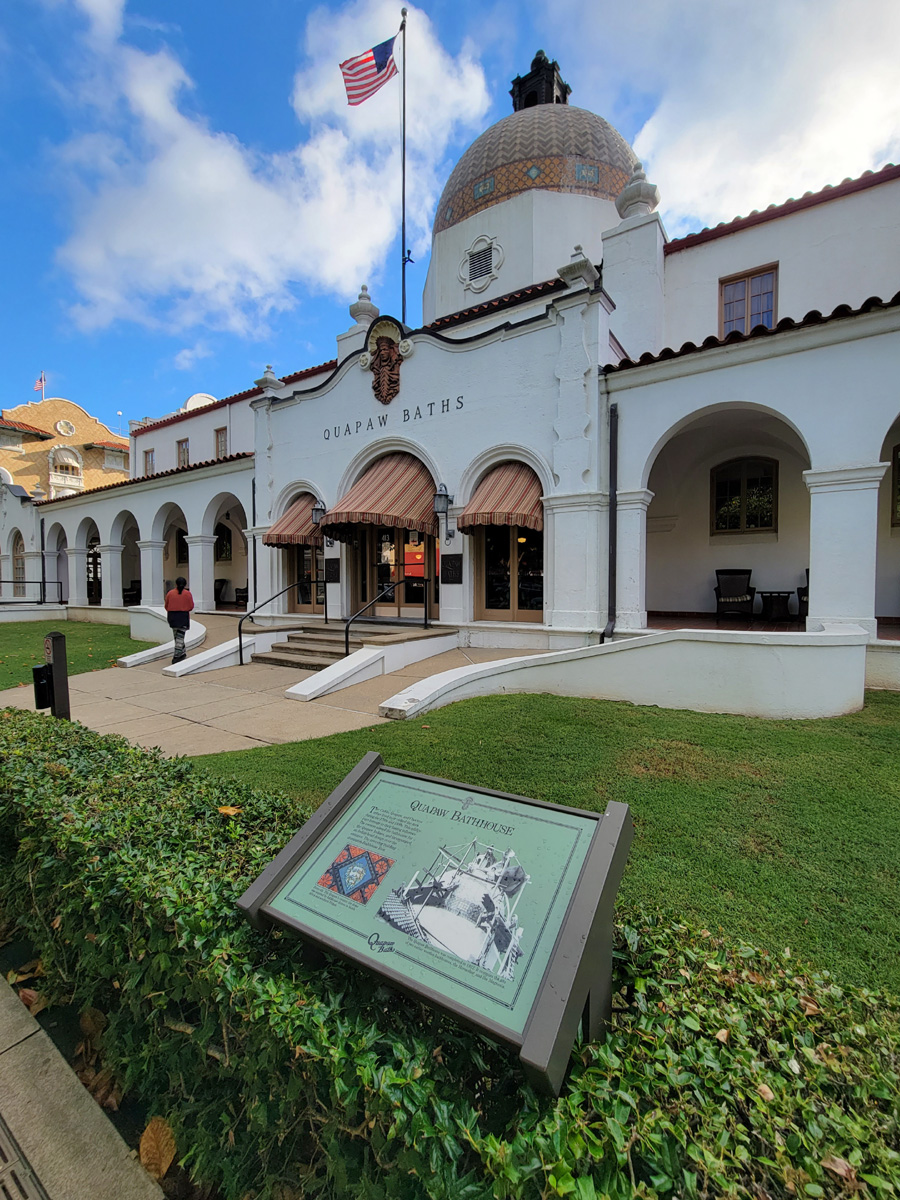 짜잔~ 우리가 오늘 이용할 온천탕인 쿼포(Quapaw)로 중앙의 둥근 돔이 타일로 장식되어 있는 Bathhouse Row에서 가장 큰 건물이다. 1922년에 문을 열어서 1984년까지 옛날 스타일로 운영을 했고, 그 후에 내부 수리를 거쳐서 지금은 현대식 대중 온천탕과 스파(spa) 시설을 갖추고 2008년에 재개장을 했다고 한다.