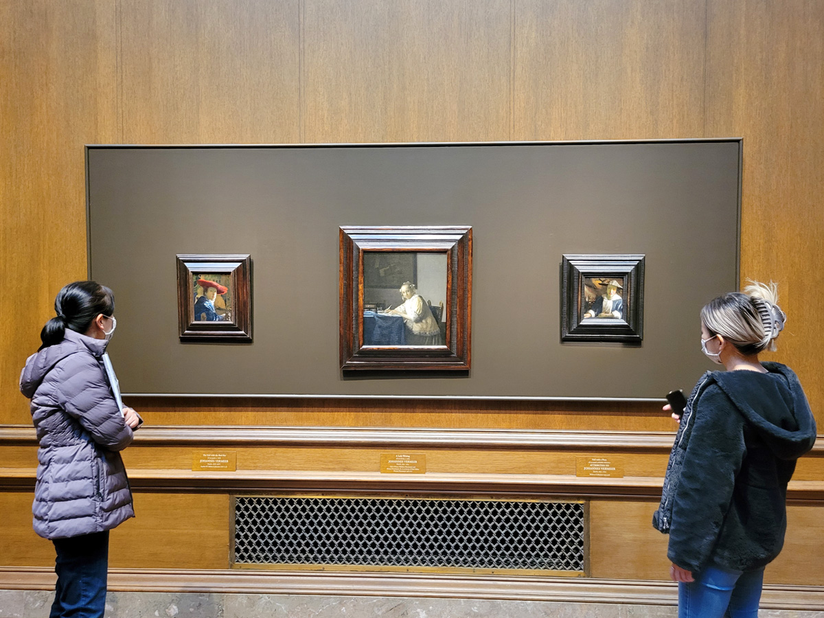 50번 전시실에 특별하게 걸려있는 네덜란드 화가 요하네스 퍼미어(Johannes Vermeer)의 작품 3점이었다. 왼쪽부터 Girl with the Red Hat, A Lady Writing, 그리고 퍼미어의 작품으로 추정되는 Girl with a Flute 그림이다. 국립미술관은 Woman Holding a Balance 그림까지 총 4점을 가지고 있는데, 그것은 현재 독일에서 해외전시 중이란다. 퍼미어(Vermeer)라는 화가의 이름은 잘 모르시는 분이라도, 영화로도 제작된 그림 <진주귀걸이를 한 소녀>는 들어보셨을 텐데, 블로그 이웃이신 요세미티님의 퍼미어에 관한 해박하신 글들을 클릭해서 보시면 이해에 도움이 되실 것이다.