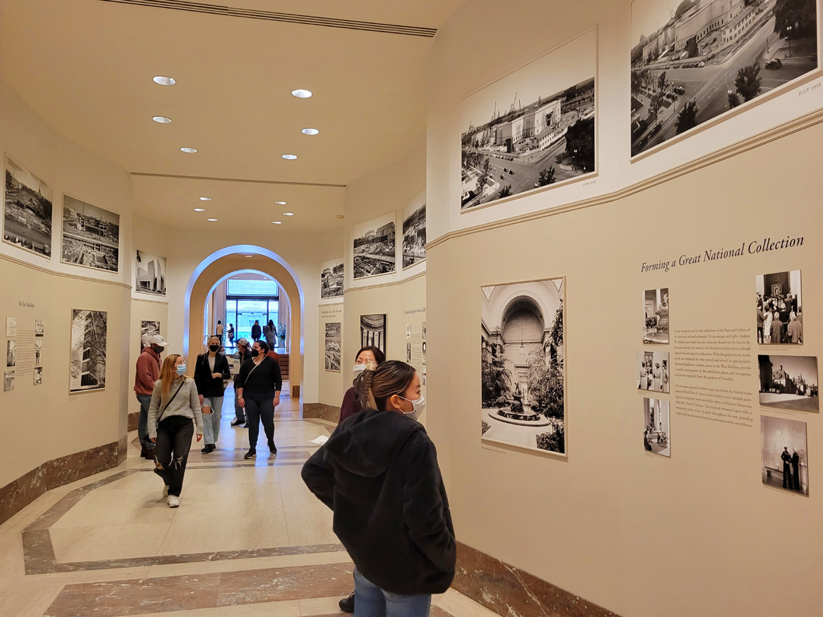 3부분 중에서 최초로 1937년에 공사가 시작되어 1940년에 문을 연 웨스트빌딩의 뒤쪽 출입구로 들어가면 1층인 지상층(Ground Floor)으로 연결된다. 내셔널몰의 앞쪽도 거의 같은 모습이지만 큰 계단이 있어서 출입구가 바로 2층인 주층(Main Floor)으로 연결되는 차이점이 있다.
