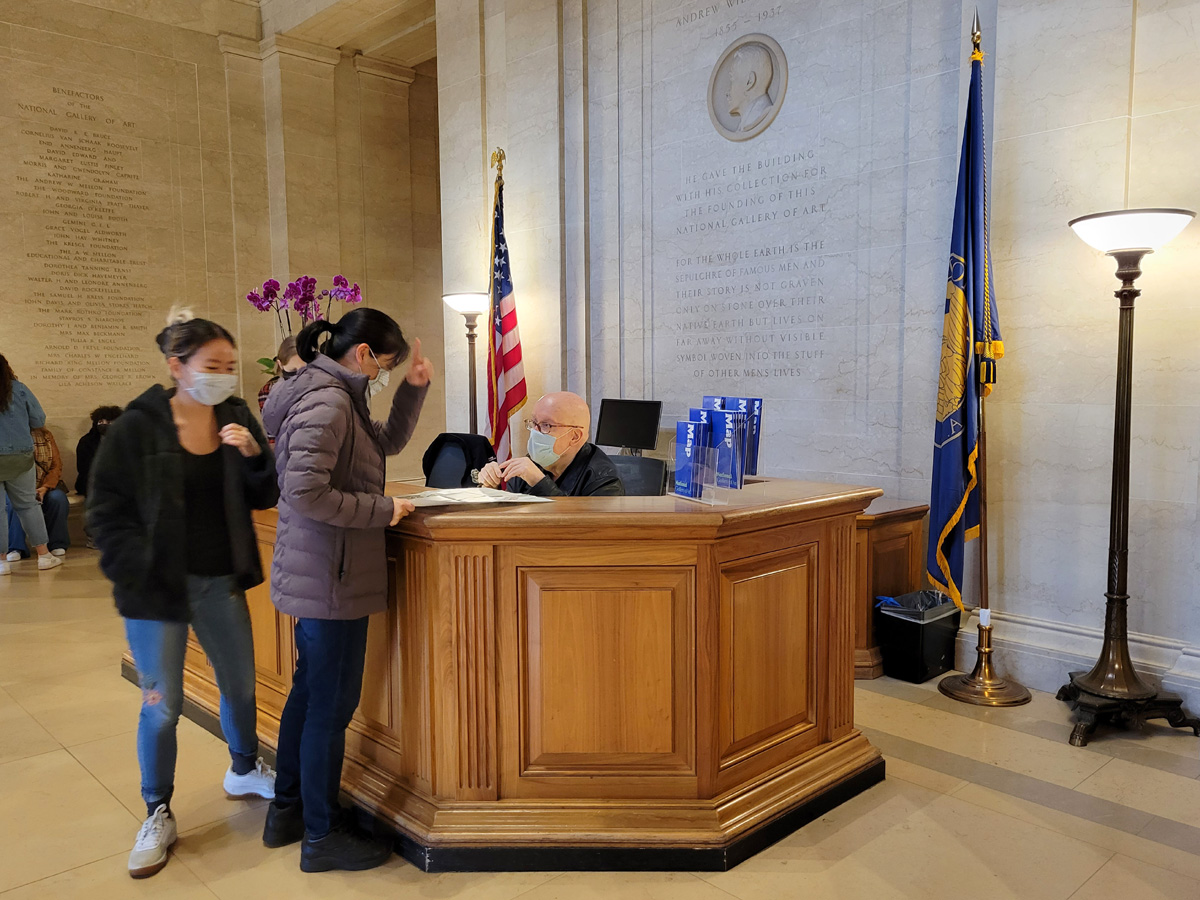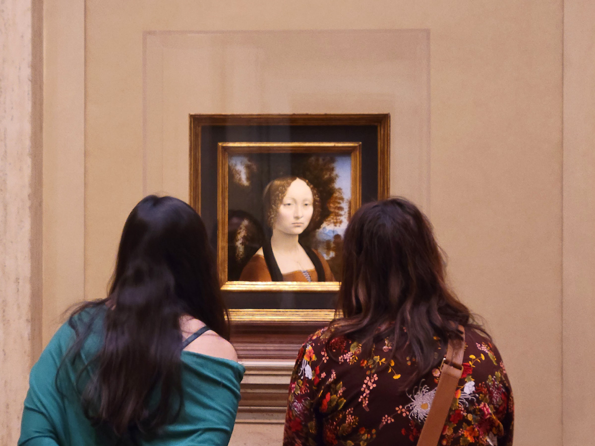 지금 6번 전시실에 있는 긴머리의 두 여인은, 미국에 있는 유일한 레오나르도다빈치(Leonardo da Vinci)의 유화인 Ginevra de' Benci 그림을 보고 있다. 이 그림은 특이하게 전시실 가운데 투명한 보호상자 안에 들어가 있는데,